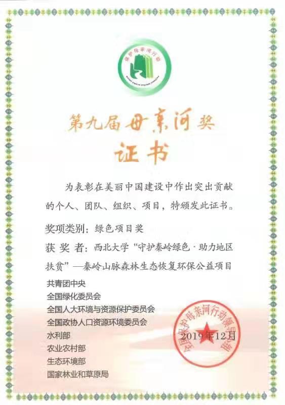 12月24日“美丽中国·青春行动”系列项目启动会暨第九届“母亲河奖”会在北京举行,共青团中央书记处第一书记贺军科、书记处书记奇巴图、徐晓,中央相关部委负责人出席颁奖典礼。我院“守护秦岭绿色,助力地区扶贫”项目在会上获全国第九届“母亲河奖”绿色项目奖表彰,是全国19个授奖项目之一,陕西省唯一获奖项目。