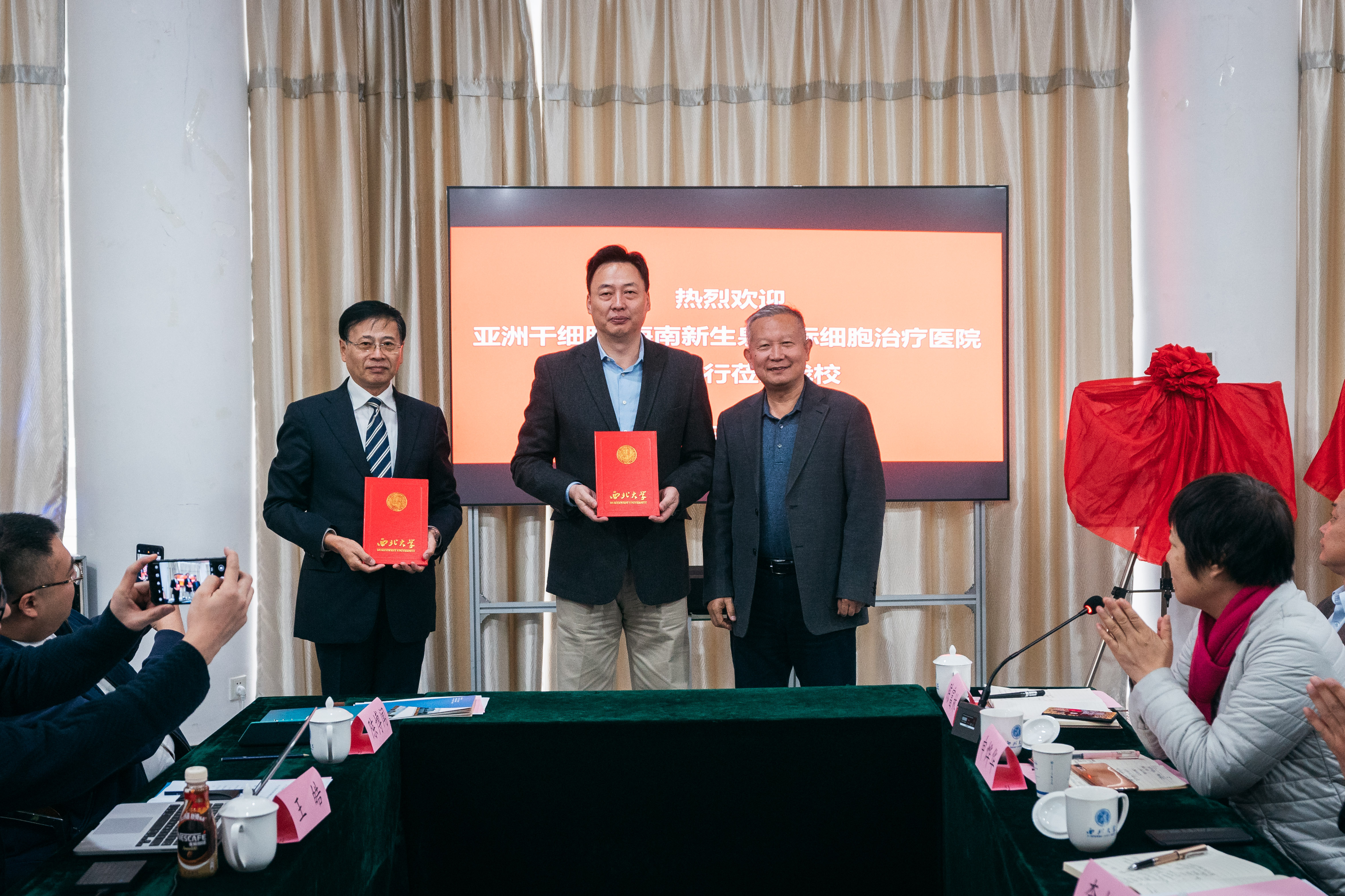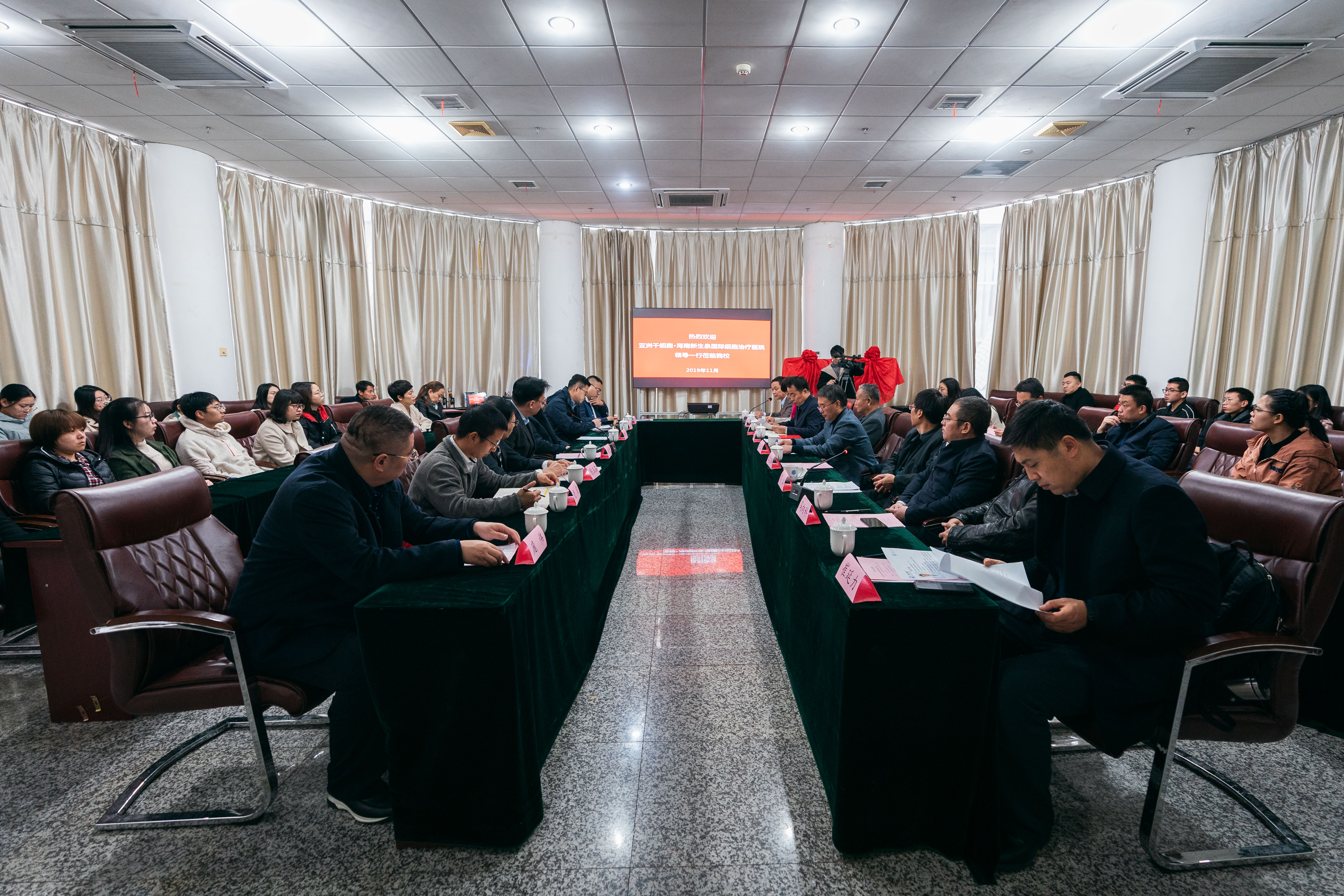11月20日,亚洲干细胞·海南新生泉国际细胞治疗医院董事长齐念民、院长陈玉石一行到访我校。校长郭立宏,校党委副书记雷忠鹏,校党委常委、副校长王正斌,党委办公室、校长办公室主任李振海,人力资源部部长马向科,科技处处长申烨华,国内合作与校友工作处处长崔延力,校长医学助理、生命科学与医学部执行主任陈富林,医学院党支部书记(直属)张宇,高层次人才项目办公室副主任万聪在太白校区会见来宾并座谈,校党委常委、副校长,生命科学与医学部主任常江主持会议。