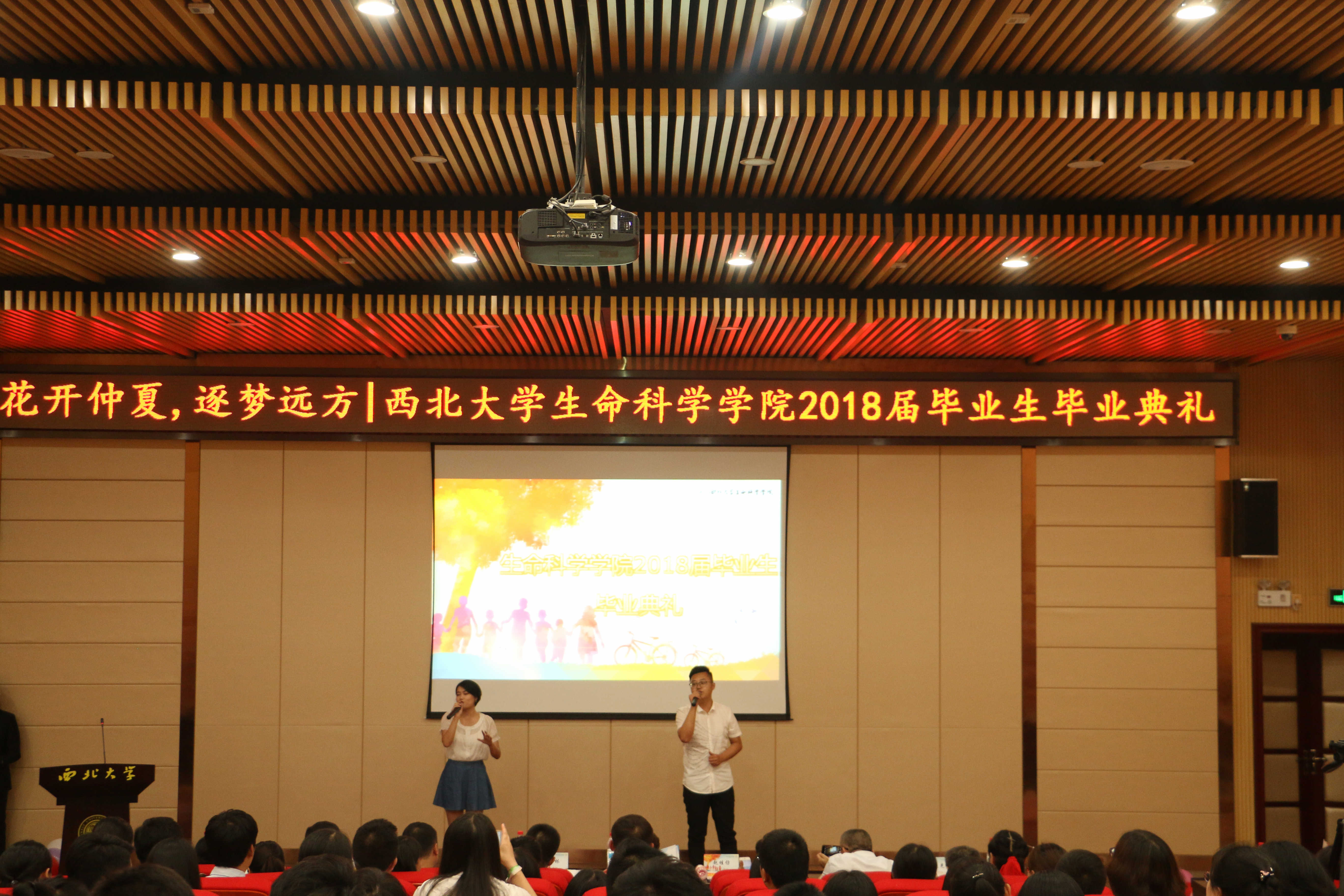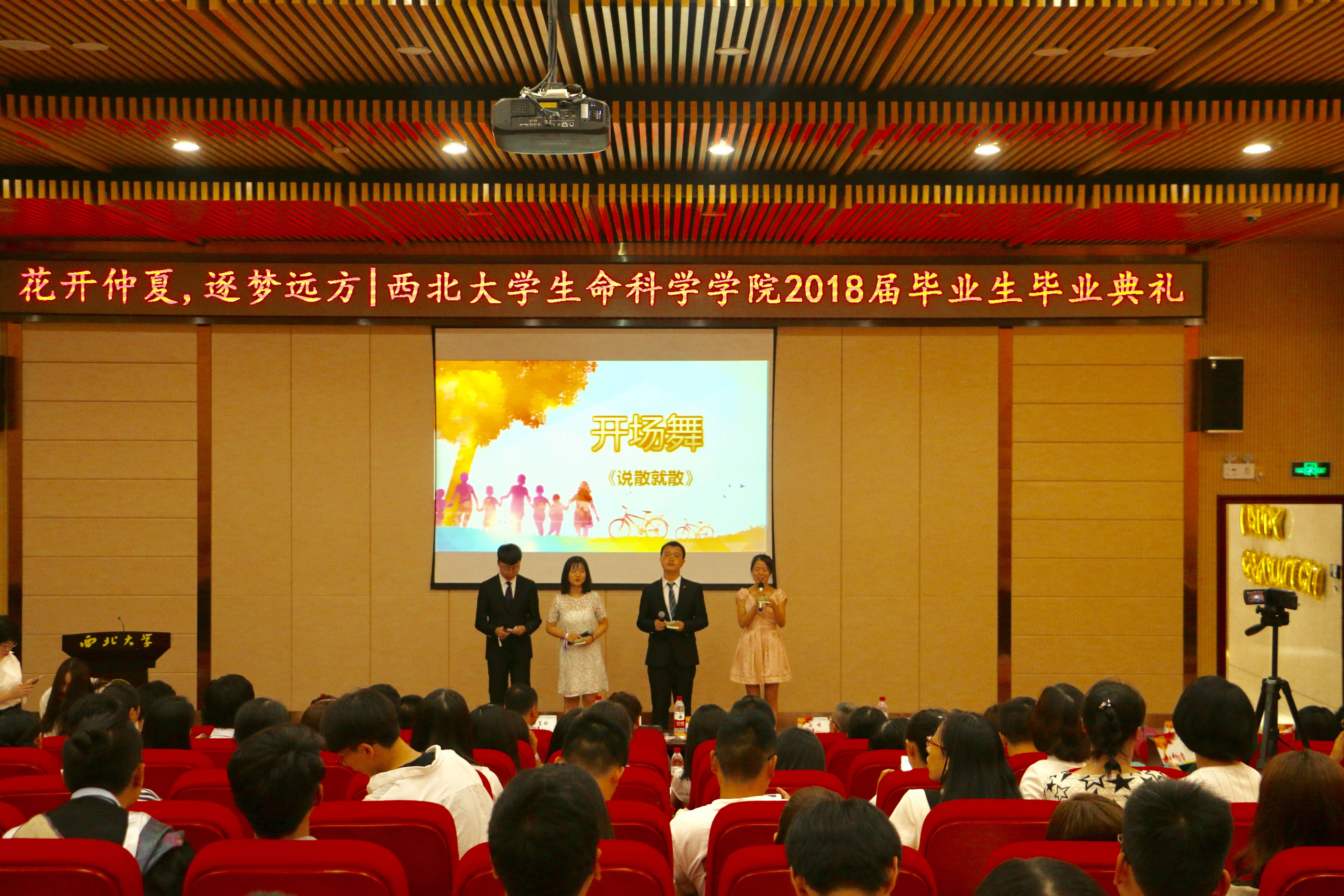 伴随精彩的毕业纪念短片《难忘西大》,毕业典礼正式拉开序幕。魅力十足的开场舞蹈,振奋人心的校歌合唱。学院领导、教师录制祝福视频对毕业生表示热烈祝贺,希望西大“公诚勤朴”的精神永远与之相随相伴。