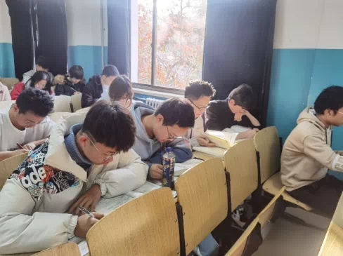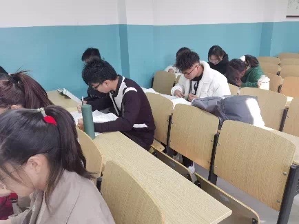 落日带走了余晖,留下同学们在晚自习教室刻苦奋战,期末临近,大家珍惜自习时间,争分夺秒,查漏补缺。