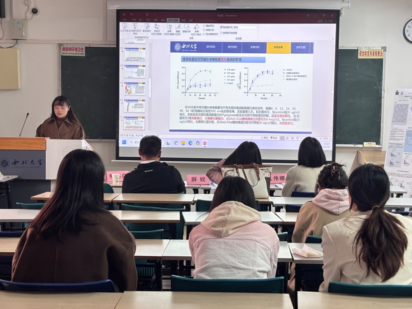 现代细胞及微生物技术应用专场于9508教室举行,共有68名同学进行了展示汇报,由熊裕焱、薛姣、孔伟娜3位老师担任评委。