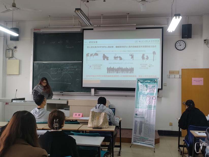 动植物学与生态系统研究专场于9507教室举行,共有65位同学进行了展示汇报,由赵鹏、郑小江、苏慧、李梦迪4位老师担任评委。