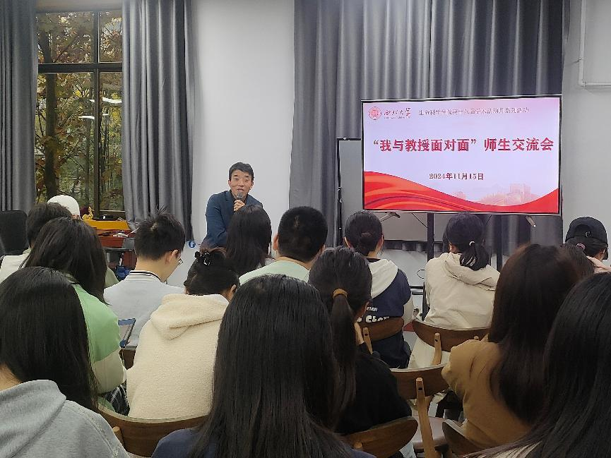 11月15日下午,学院举办了第十八届研究生学术月——“我与教授面对面”师生交流会,邀请朱忠良教授作为主讲嘉宾,40余名研究生参加,活动由张芝榕老师主持。