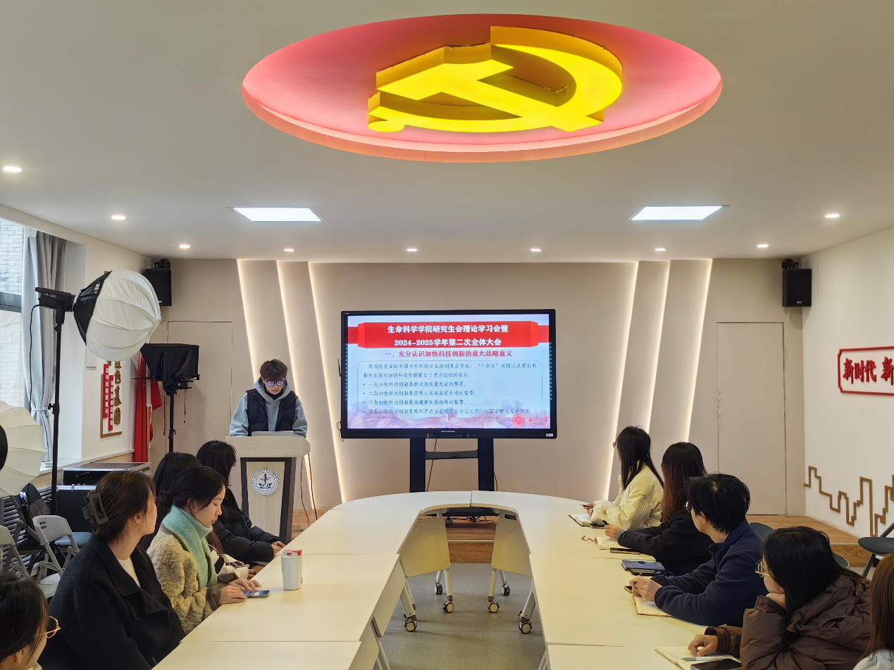 随后,与会师生共同观看了《科学家的故事》纪录片片段,并由研究生会秘书部负责人郭文杰带领大家共同学习了习近平总书记在科学家座谈会上的重要讲话和习近平总书记针对科学家精神的重要论述等内容。参会同学认真学习、领会讲话精神,并结合自身实际展开讨论,畅谈心得体会。