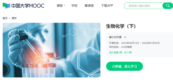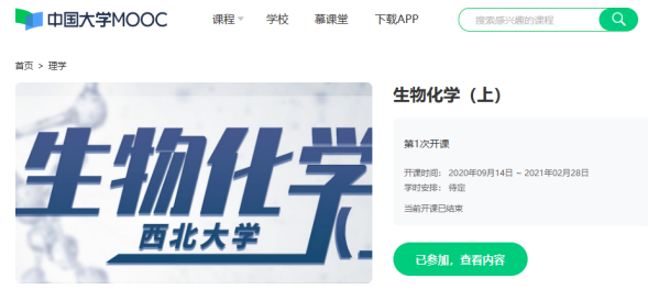 图2. 生物化学在线精品课程教学资源。生物化学(上)即静态生化,生物化学(下)即动态生化。