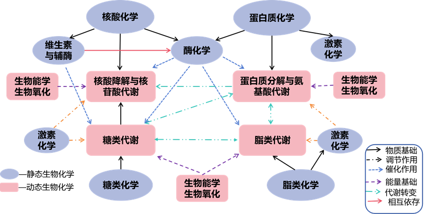 1)建构知识逻辑关系:建立课程知识内容的详细逻辑联系,尤其是强化静态生化和动态生化两部分内容之间的联系和交互,提升学生的理解力,降低学习的难度;2)建立课程素材库:将课程思政、案例分析和科学前沿融入教学内容,使教学内容人文化、时代化、前沿化,激发学生的学习兴趣,同时有助于学生的能力培养和科学素养提升。