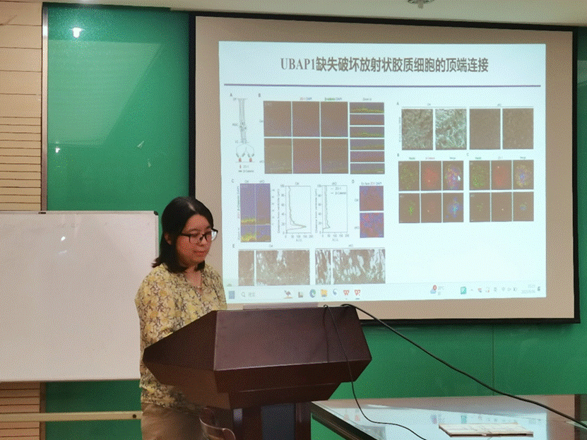 最后,徐丹老师分享了关于遗传性痉挛性截瘫(HSP)的研究。HSP是一组影响运动神经元的遗传异质性疾病,患者常出现步态异常、肌张力障碍等症状。徐老师通过对80多个相关基因进行表达谱分析,发现许多基因在胎儿期神经发育阶段高表达。以UBAP1基因为例,其缺失会影响黏附连接蛋白的表达、细胞极性与核定位迁移等,导致脑室扩大(类脑积水表型)和运动神经元减少,通过胚胎电转进行快速挽救实验,也验证了表型与基因功能的因果关系。此外,徐老师还指出UBAP1 缺失会导致溶酶体膜修复功能障碍,影响mTORC1信号通路的激活,导致神经元凋亡和小胶质细胞的激活,使用mTOR抑制剂(如雷帕霉素)可部分改善这种症状,为HSP的治疗带来了新的希望。