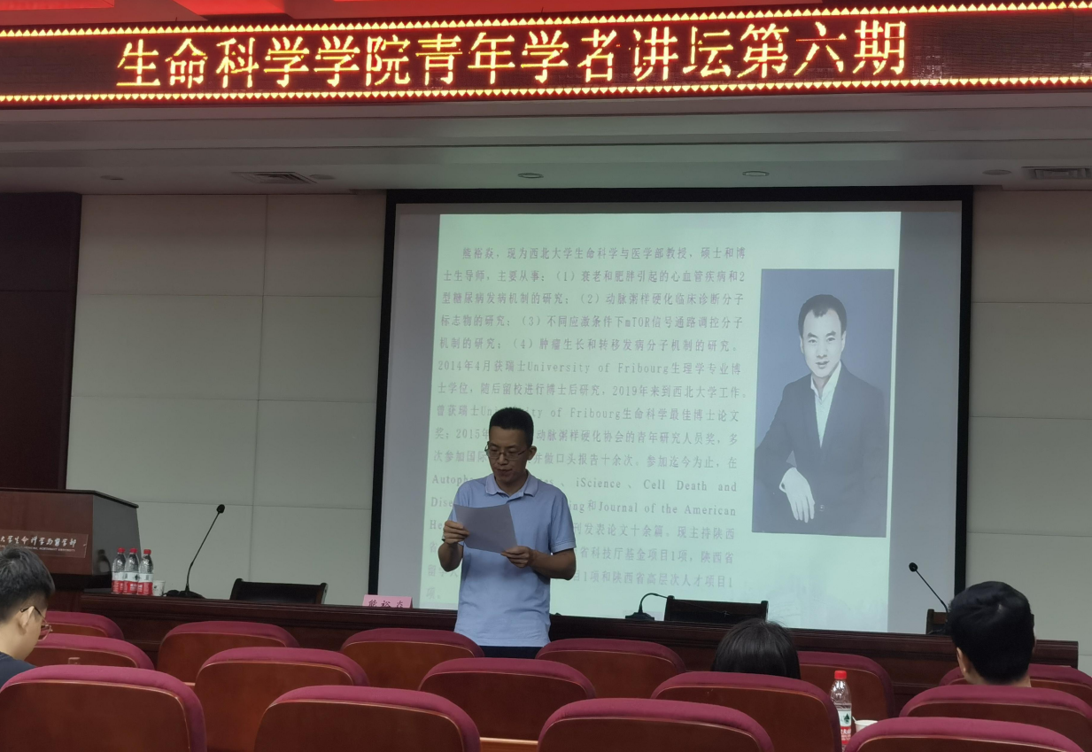 2021年5月12日中午,我院青年学者讲坛第六期于太白校区博望报告厅举行。本次讲座由熊裕焱教授主讲,主要对精氨酸-II在血管内皮衰老、动脉粥样硬化和2型糖尿病中的作用以及机制展开介绍。学部50余名师生参加。讲坛由关锋教授主持。
