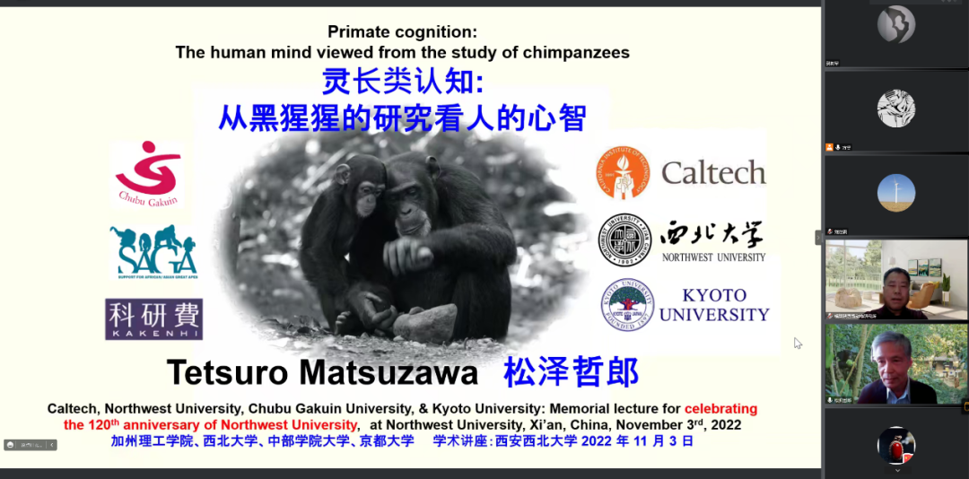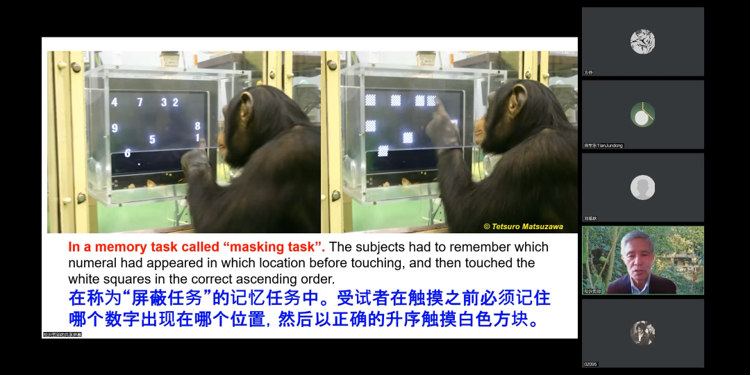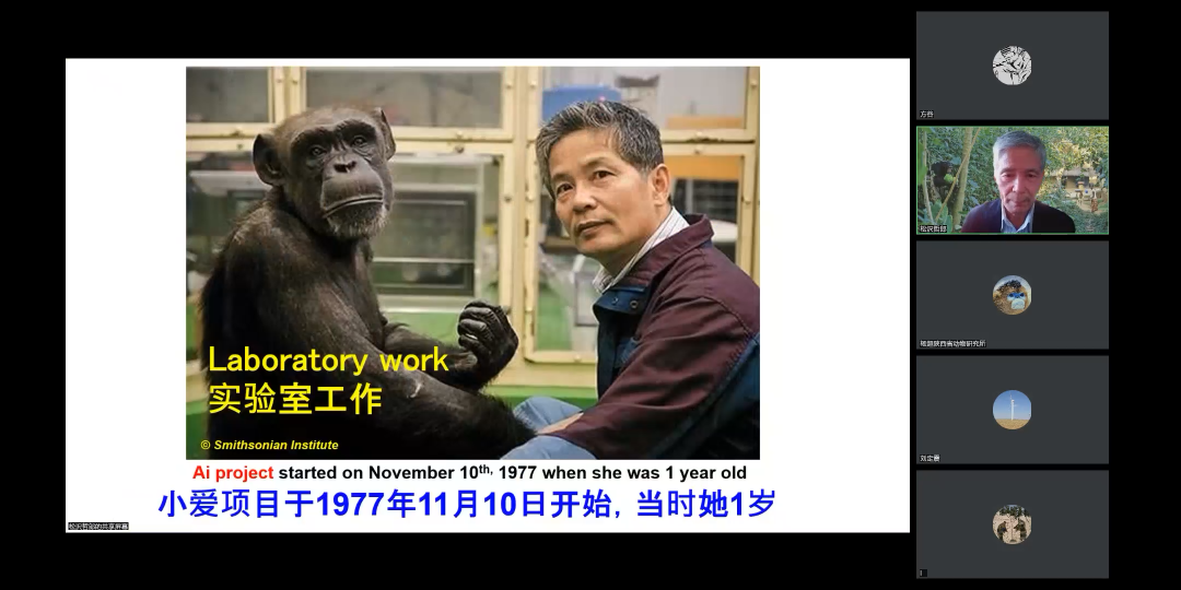2022年11月3日下午14:30,我院金丝猴团队于线上开展主题为“Primate cognition: The human mind viewed from the study of chimpanzees”的英文学术讲座。本次讲座邀请日本Tetsuro Matsuzawa教授为主讲嘉宾,李保国教授为会议主持。