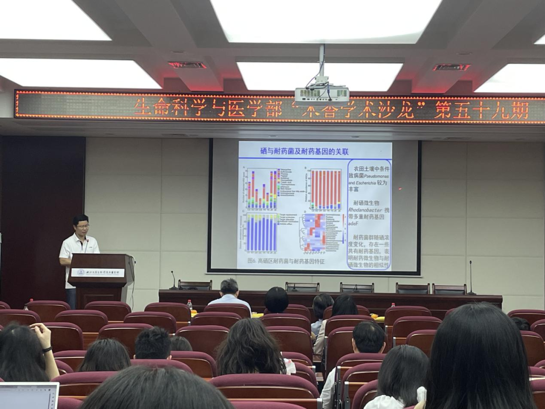王世伟教授首先介绍了硒元素在人体中发挥的功能以及目前我国土壤硒元素的分布状况,指出我国存在部分地区缺乏硒元素的问题,并提出通过我国的超富硒植物——堇叶碎米荠来解决硒元素缺乏问题。通过研究堇叶碎米荠与微生物之间的关系,筛选出对该植物富硒具有促进作用的微生物群落,揭示了微生物群及其功能对堇叶碎米荠生长及其富硒的作用。