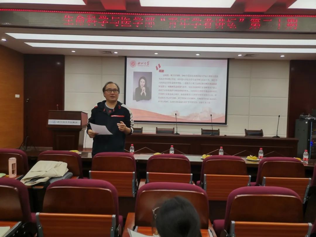 10月12日中午,生命科学与医学部第二十期“青年学者讲坛”于博望报告厅举行,邀请胡澍副教授作为主讲嘉宾进行学术分享,四十多位学部师生参加,报告由付爱根教授主持。