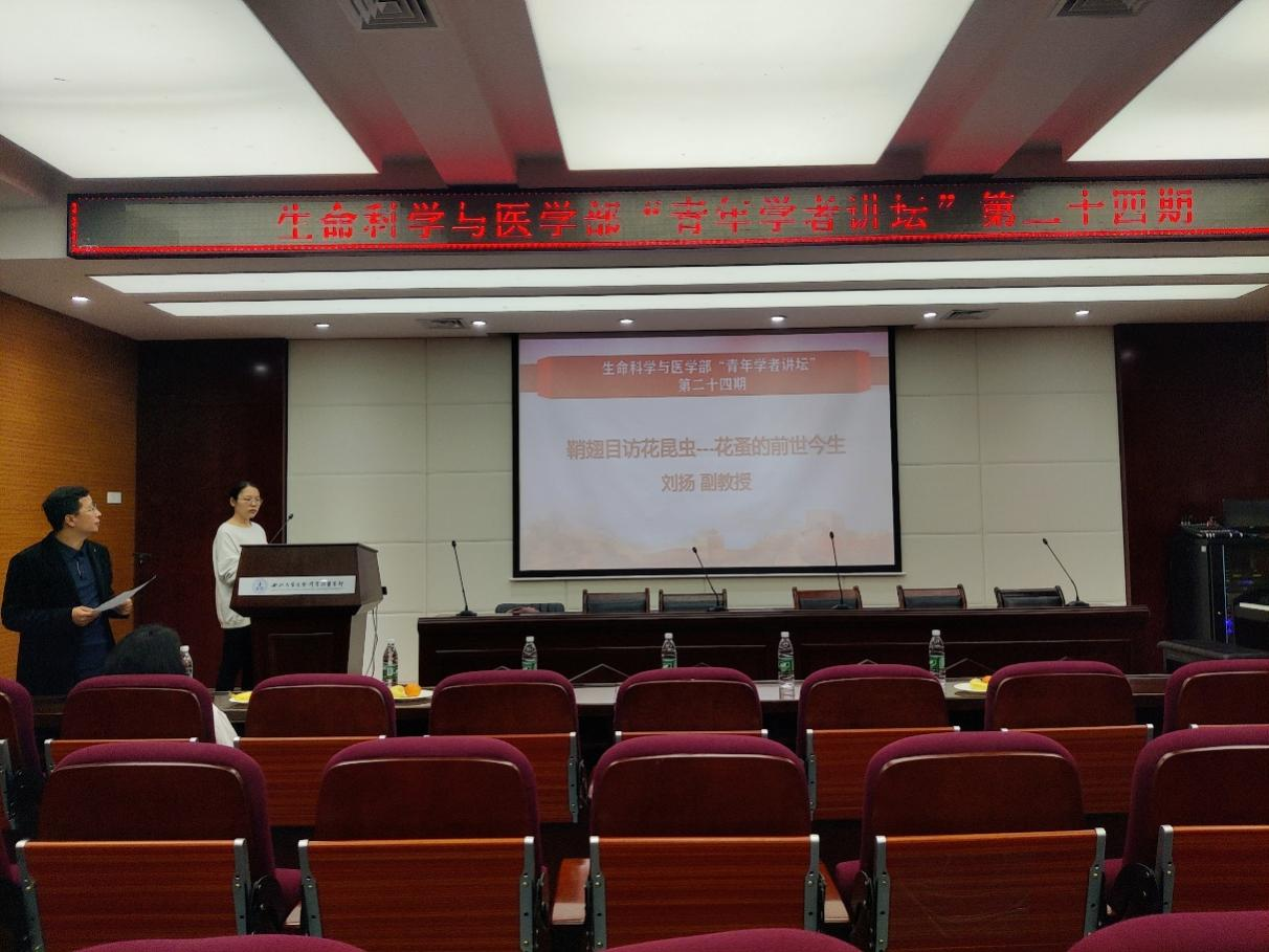 2024年5月9日中午,生命科学与医学部第二十四期“青年学者讲坛”于博望报告厅举行,邀请刘扬老师作为主讲嘉宾进行学术分享,三十多位师生共同参加。报告由赵鹏教授主持。