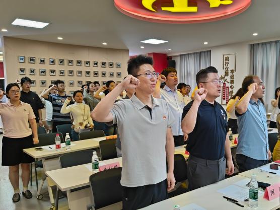 会议开始,预备党员代表杨陆同志带领全体党员重温入党誓词。随后,开展yl9193永利集团第三届组织生活案例大赛。自5月中旬以来,围绕“党旗领航科教新生态,组织力擘画发展新蓝图”主题,yl9193永利集团党委面向全体党支部征集组织生活案例,初赛阶段共征集15个案例,各支部从不同角度、多个维度反映“三会一课”、一站式学生社区特色党日活动、党员宣讲团等组织生活精彩瞬间。