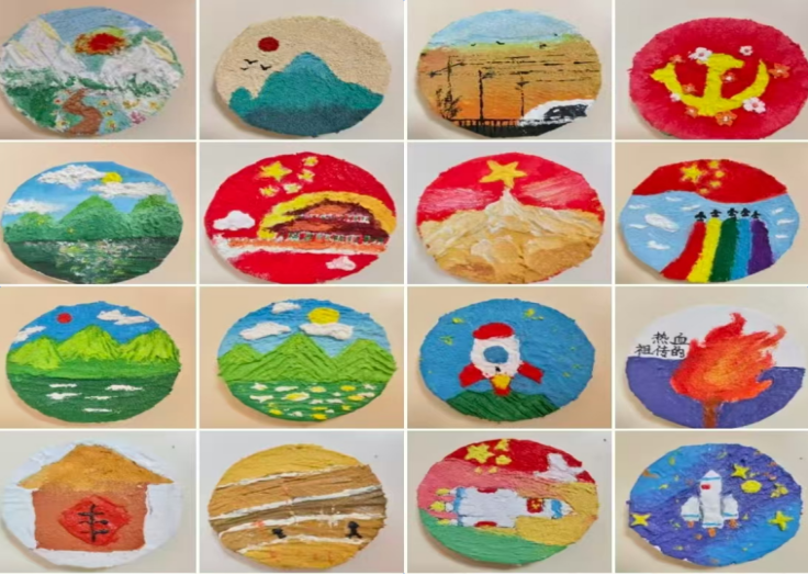 本次活动以石英砂肌理画为创新载体,巧妙融合艺术创作与党史学习教育,借助独特的砂画艺术形式,生动展现国家在各领域取得的发展成就,呈现新时代精神风貌与未来发展蓝图。活动现场,“红色基因”宣讲团成员首先开展了“初心讲述”微宣讲,以鲜活的故事与深切的感悟为活动拉开序幕。随后,126名同学以小组为单位,围绕党史重要事件、“十四五”建设成就、“十五五”发展愿景等核心主题展开创作,相关作品主题鲜明、构思精巧、风格多样,吸引了大量师生驻足观赏。现场创作结束后,学院通过官方微信公众号发起线上投票,49幅作品进入投票环节,累计吸引16164人次参与投票环节,最终评选出一等奖1项、二等奖2项、三等奖3项、优秀奖若干,并对获奖作品进行集中展示。