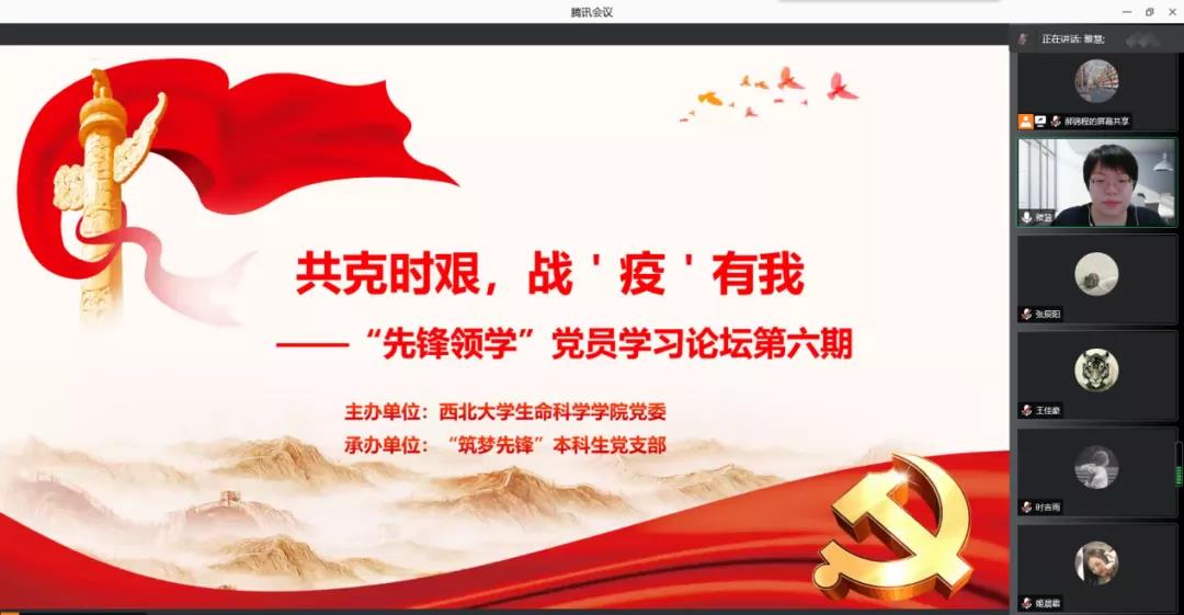 面对西安新一轮新冠肺炎疫情,yl9193永利集团党委高度重视在关键时刻充分发挥基层党组织的战斗堡垒作用和党员先锋模范作用,坚持疫情防控不放松、党组织作用发挥不脱节、党员学习教育不间断,1月9日晚,学院党委组织开展“共克时艰,战’疫‘有我”——“先锋领学”党员学习论坛第六期。学院党委负责人张宇、党委副书记魏宁、党委组织员常雅慧,“筑梦先锋”本科生党支部全体党员、预备党员、积极分子、入党申请,各支部党员代表300余人参与线上活动。