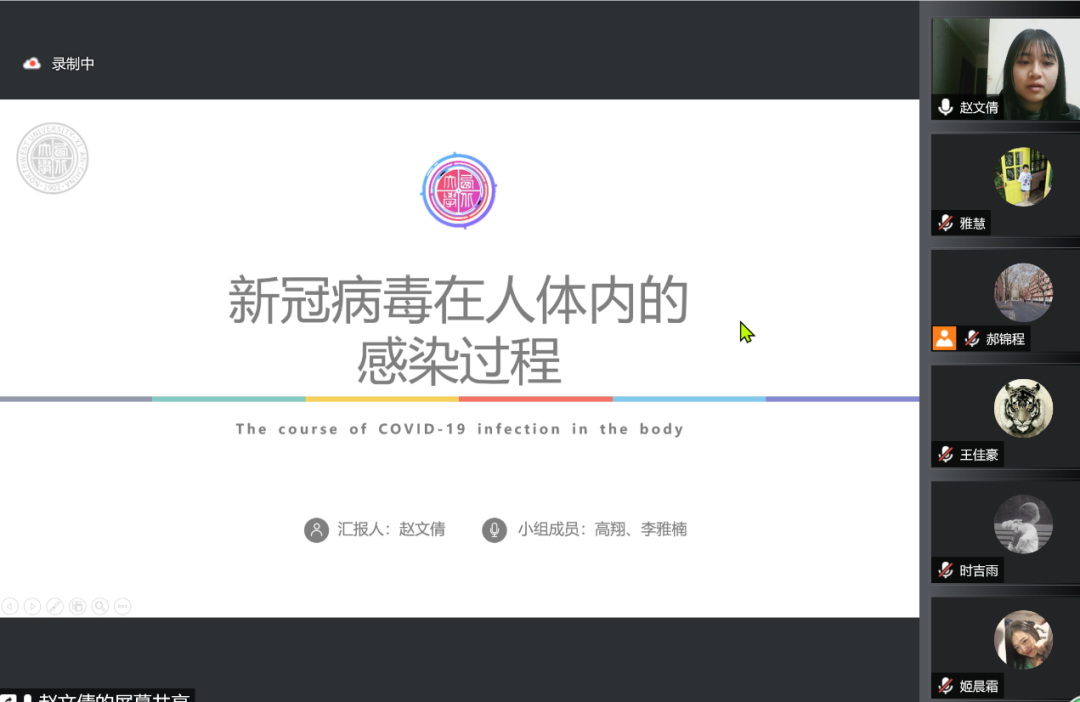会议开始,“筑梦先锋”本科生党支部党员郝锦程向与会人员介绍了西安疫情防控最新进展。随后15名党员分成5组进行学习汇报。汇报围绕“新冠病毒在体内的感染过程”、“阻断病毒社区传播,实现社会面清零”、“隔离转运与防控分析”、“新冠病毒发展史”、“疫情何时结束”五个主题展开,重点讨论了新冠病毒的构成及入侵方式、阻断当前病毒社区传播途径的实施措施、严格防控的必要性和合理性、新冠病毒的“前世今生”以及新冠疫情怎样才算结束等热点问题,学以致用引导同学们全面科学理性地看待本轮疫情,凝聚众志成城、同舟共济的强大正能量。