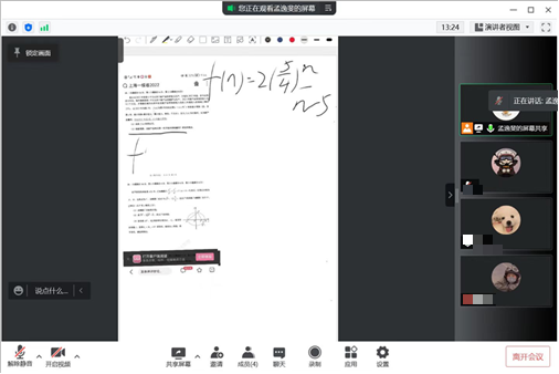 于2022年5月28日开展了第一次数学线上辅导,成立三人小组,由孟逸斐同学主讲,为学生讲解习题,其他同学查找资料,为学生答疑解惑,在服务队成员的共同努力下,帮助学生解决疑难问题,巩固知识,尽心尽力,争取突破难点,让学生进步成长。