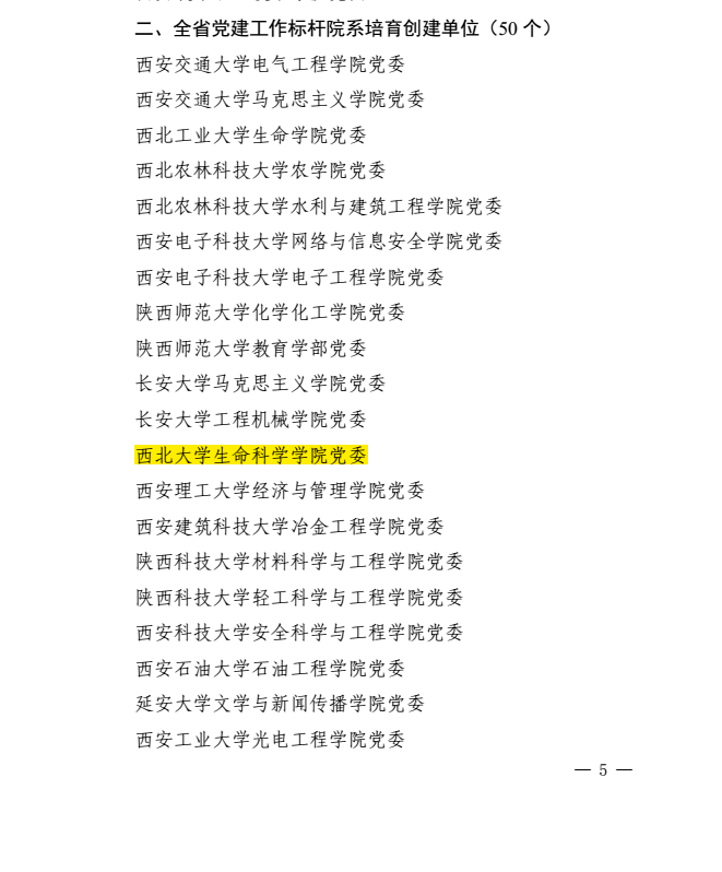 近日,中共陕西省委教育工委印发《关于公布第三批陕西高校党建工作示范高校、 标杆院系、 样板支部培育创建名单的通知》,我院入选第三批陕西高校党建工作标杆院系培育创建单位。
