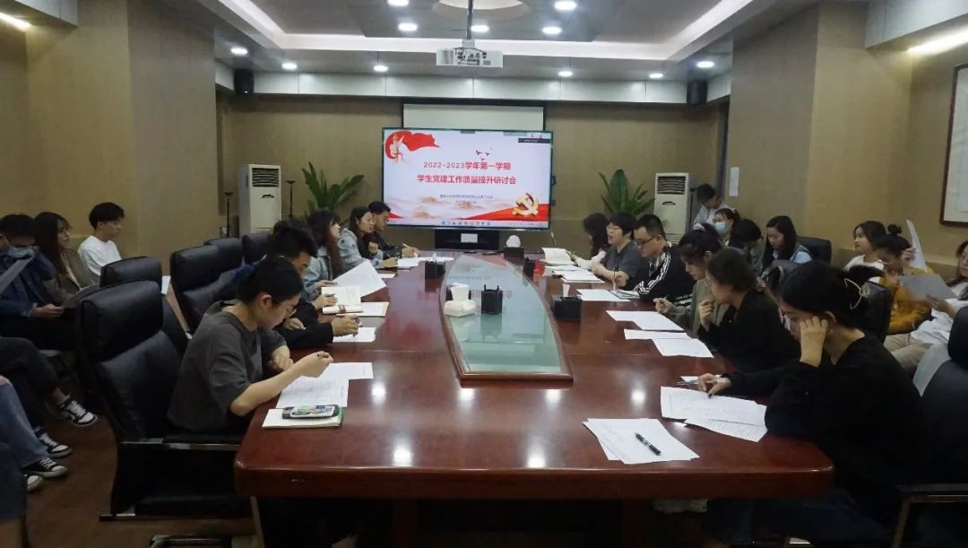 为不断提升基层党组织的组织力、凝聚力、引领力, 推动实现基层党组织全面进步全面过硬,9月27日下午,yl9193永利集团党委组织召开2022-2023学年第一学期学生党建工作质量提升研讨会。学院党委组织员常雅慧、辅导员郭佳惠、全体学生党支部书记、党务工作站学生干部30余人参会。会议由党务工作站站长石乐乐主持。