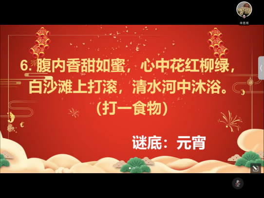 2月5日,“筑梦先锋”本科生党支部开展“红色灯谜庆元宵,月圆时刻盛世欢”主题党日活动,将理论学习与元宵节传统习俗相结合,通过学习传统文化、分享家乡节日特色、猜灯谜等形式大力弘扬中华传统文化。活动结束后,支部收集了同学们在元宵节的精彩时刻与心得体会,带领学生党员、积极分子在多样体验中激发出建功新时代的热情与担当。