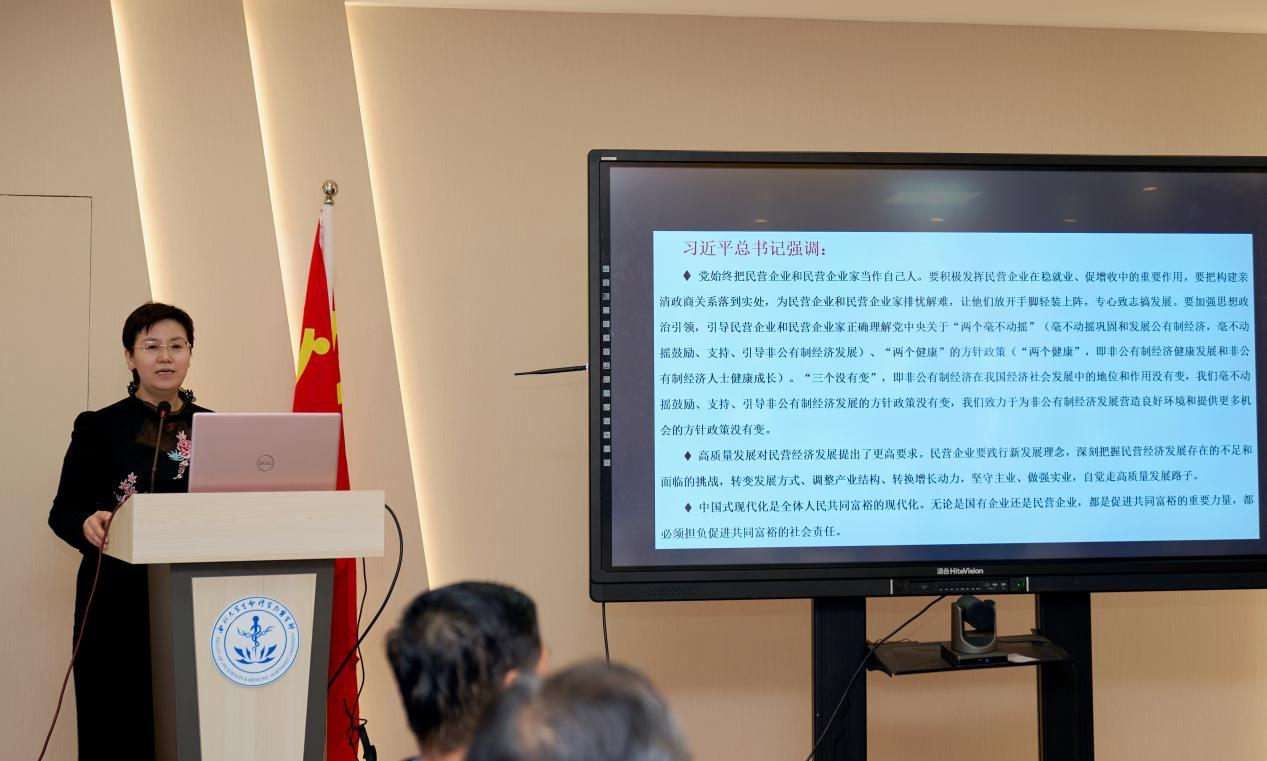 崔教授提到,本次大会主要形成了四个方面的共识,一是进一步明确了“两个确立”,二是进一步明确了习近平新时代中国特色社会主义思想的重要地位,三是进一步明确了中国式现代化的重要意义,四是进一步明确了人民政协的工作原则与发展方向。结合习近平总书记对政协委员提出的8项要求,她进一步领悟到,一定要深刻理解习近平新时代中国特色社会主义思想的核心要义、精神实质、丰富内涵与实践要求;要毫不动摇地坚持党的领导、统一战线和协商民主有机结合;要牢牢把握高质量发展首要任务,勇于推动工作创新,提升专业技能水平,为全面推动经济发展与社会进步贡献好力量。最后,崔教授分享了个人参加“两会”提出的四个提案,鼓励学部教师紧密围绕学部2.0版综合改革和学校新一轮“双一流”建设工作核心,结合“大健康”格局建设工作思路,主动思考,积极创新,推动业务水平再上新台阶,科学技术实现新突破,不断提高科研成果转化和产业化水平。
