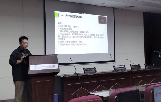 本次专题培训旨在进一步帮助宣传工作队伍认清新时期高校宣传思想工作的任务和挑战,熟练掌握宣传新技术新平台运用,努力提升网络舆情应对能力,提升宣传工作的业务能力和水平。培训班为期2天,主要以辅导报告、经验交流、自学相关材料等形式进行,培训内容主要包括习近平总书记关于宣传思想工作的系列重要讲话精神和重大决策部署,校院党委关于加强宣传思想工作等文件精神,网络舆情应对和新媒体建设等方面内容。新闻传播学院研究生、永利集团官微摄影部部长塔力哈尔·叶尔江同学,围绕照片拍摄和视频制作剪辑进行讲授,尤其对如何选取拍摄角度、抓拍人物特写技巧、常用剪辑软件操作方法、不同拍摄场景所需设备及参数调整范围等进行介绍。新闻传播学院研究生,曾供职于中央广播电视总台国广国际在线频道的闫续同学,针对新闻报道撰写和网络文章写作进行讲授,向大家讲解了活动新闻报道及人物专访的写作要点与方法,强调新闻写作要文字精炼、简明扼要、准确迅速,体现真实性与向上向善的正确导向。