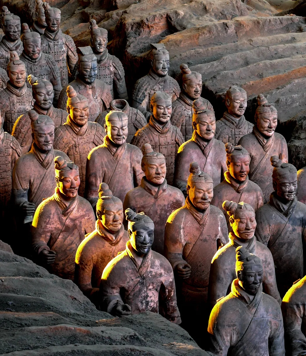 它们曾经鲜衣怒马,却“生活”在地下世界,被黑暗吞噬2200多年,直到1974年的一束光,将它们照亮,惊艳世人。然而光彩照人的颜色,在地下岁月的磨砺和出土后的加速老化中,消失殆尽,只留下由8000多个真人大小的俑,组成的土黄色军团,人称秦始皇兵马俑。即便如此,这些兵马俑仍然栩栩如生、恍若在世,他们千人千面、各不相同,甚至缕缕发丝、纤毫毕现,具有鲜明的个性和强烈的时代特征。两千多年来黄土虽将它们掩埋,时光却未将它们遗忘,让我们通过下面普通秦人的视角重现那段遥远的过往。