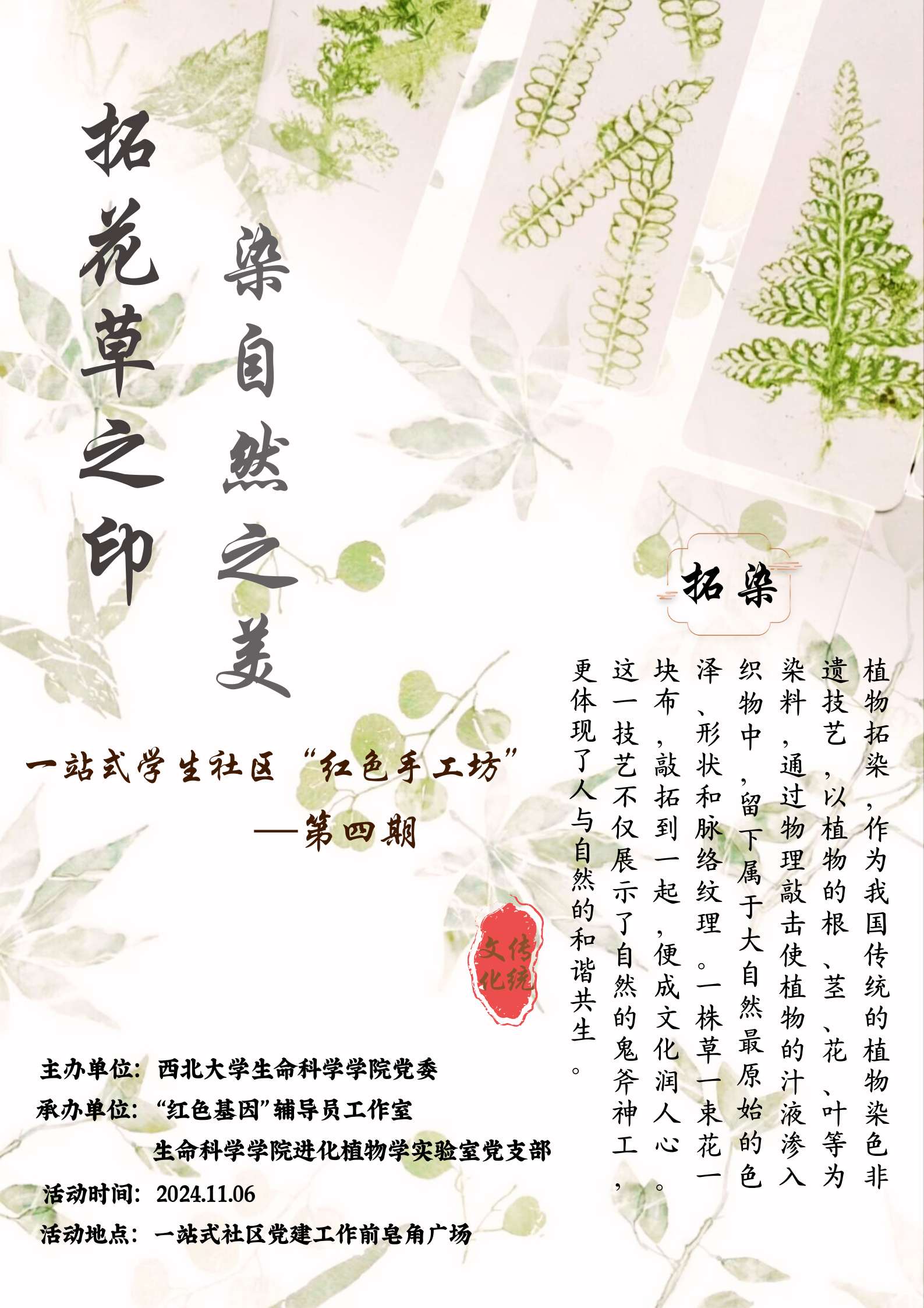 一站式学生社区“红色手工坊”第四期——““拓花草之银 染自然之美”植物拓染活动预告