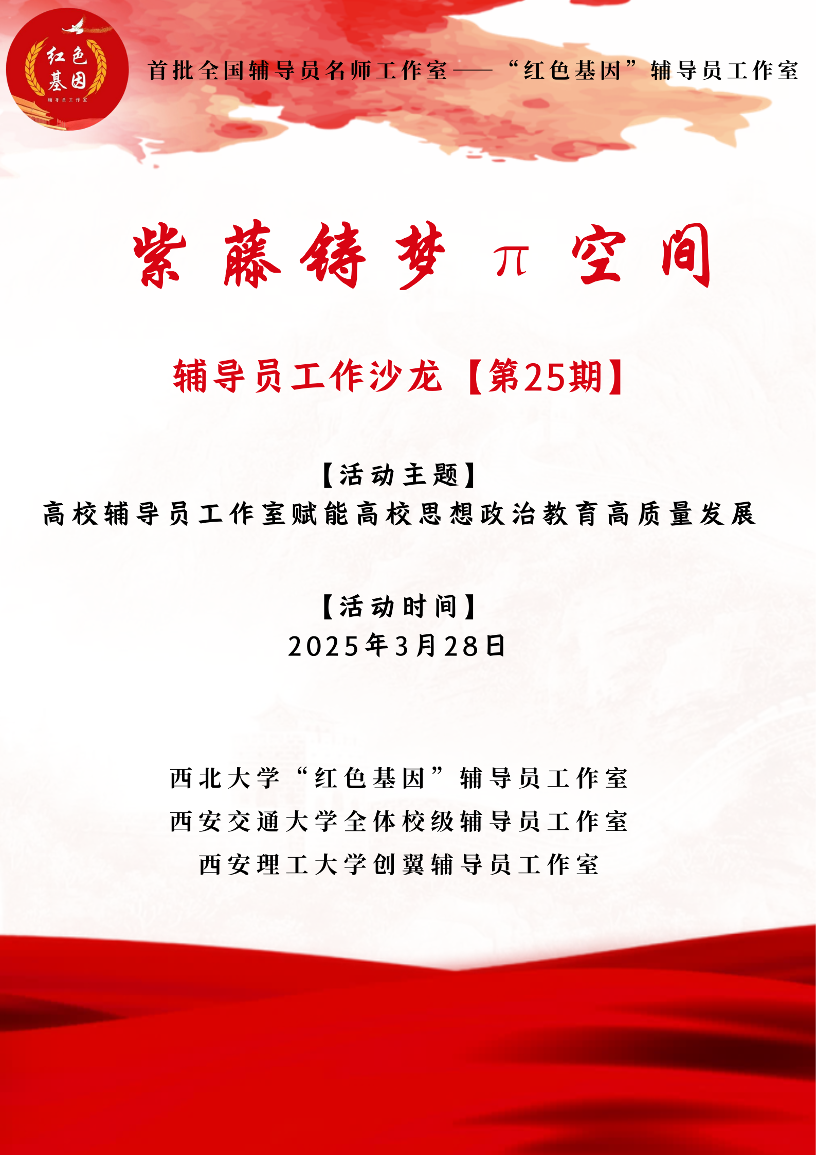 “紫藤铸梦π空间”辅导员工作沙龙 (第25期):《高校辅导员工作室赋能高校思想政治教育高质量发展》活动预告