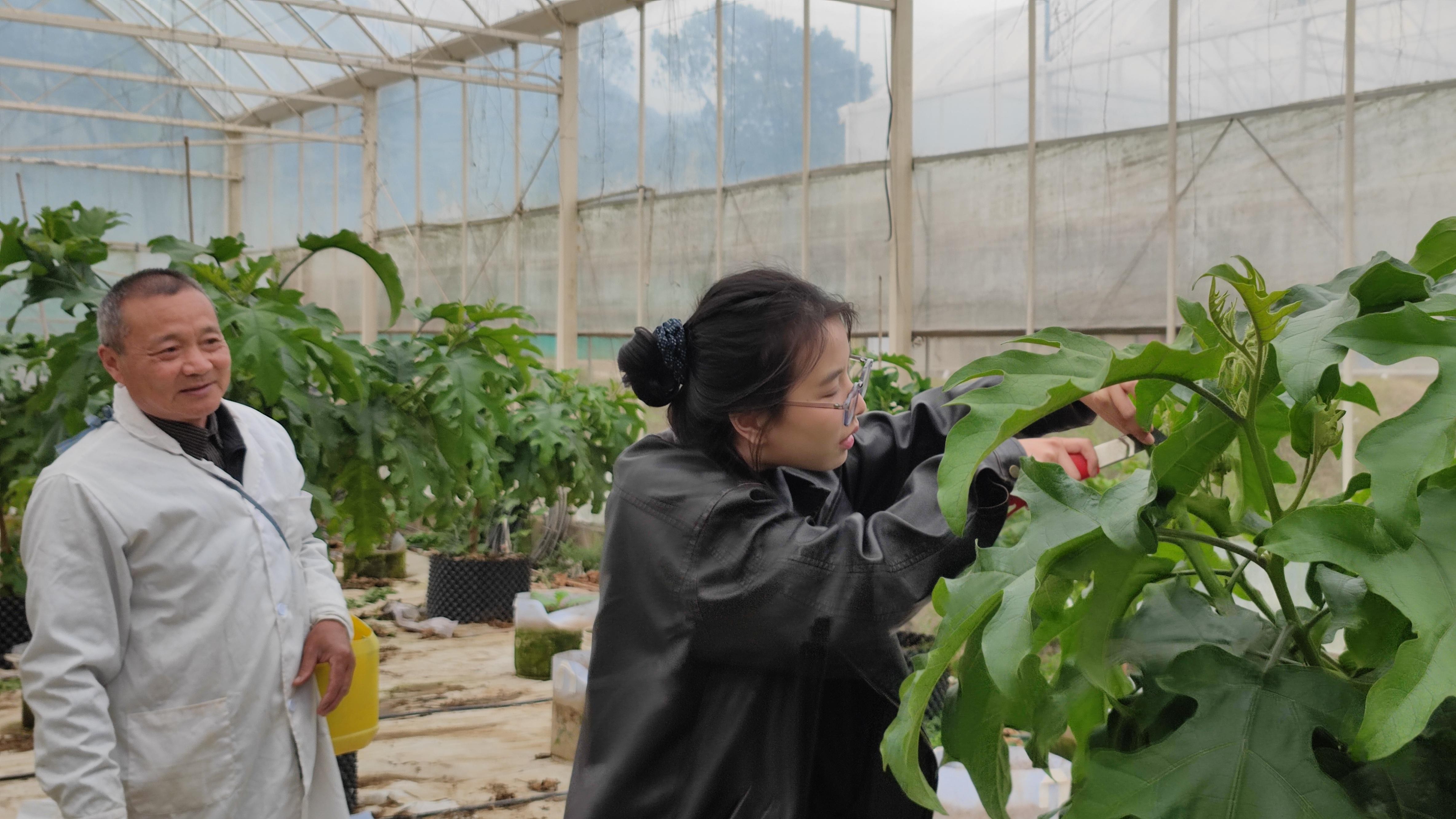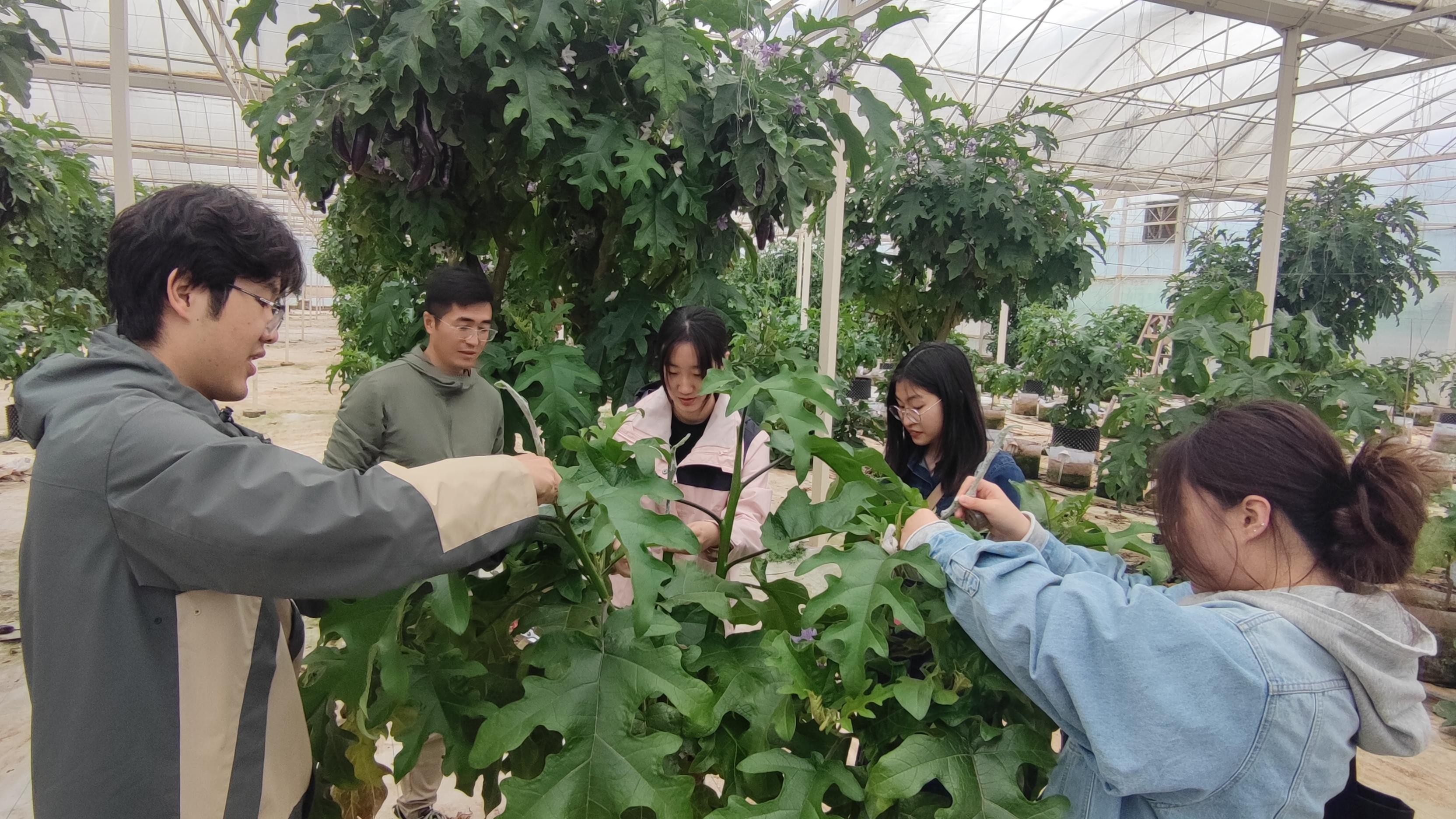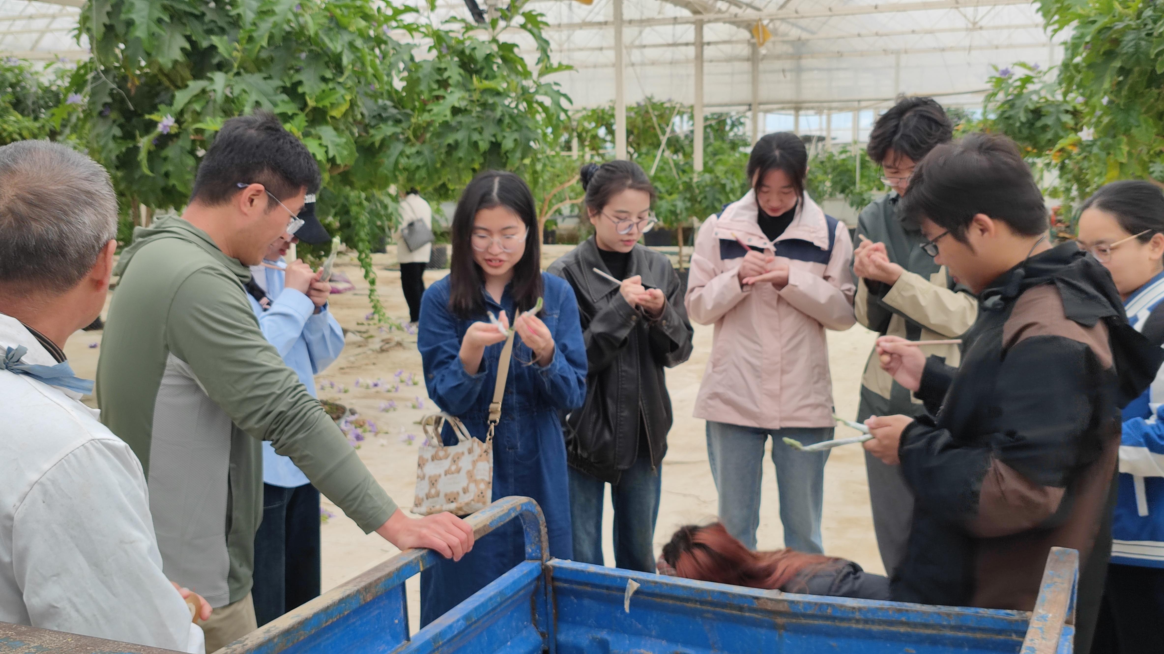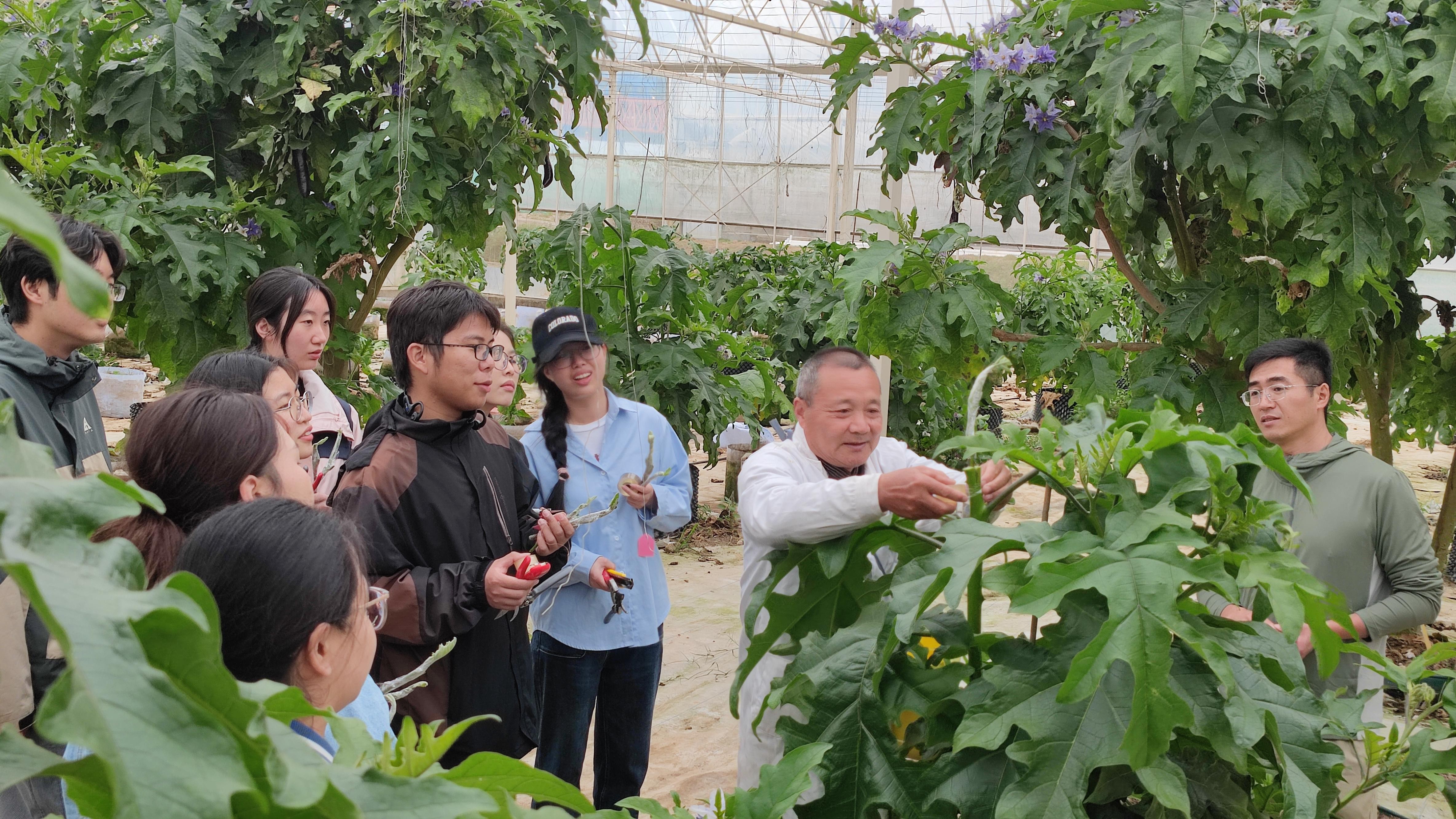 同学们戴上手套,拿起刀片,亲身体验了将茄子、辣椒、西红柿嫁接在砧木上的全过程。党员冯晓敏在操作后感慨:“看似简单的嫁接动作,需要精准的切面和细致的绑扎,科研工作者的匠心精神令人敬佩。”