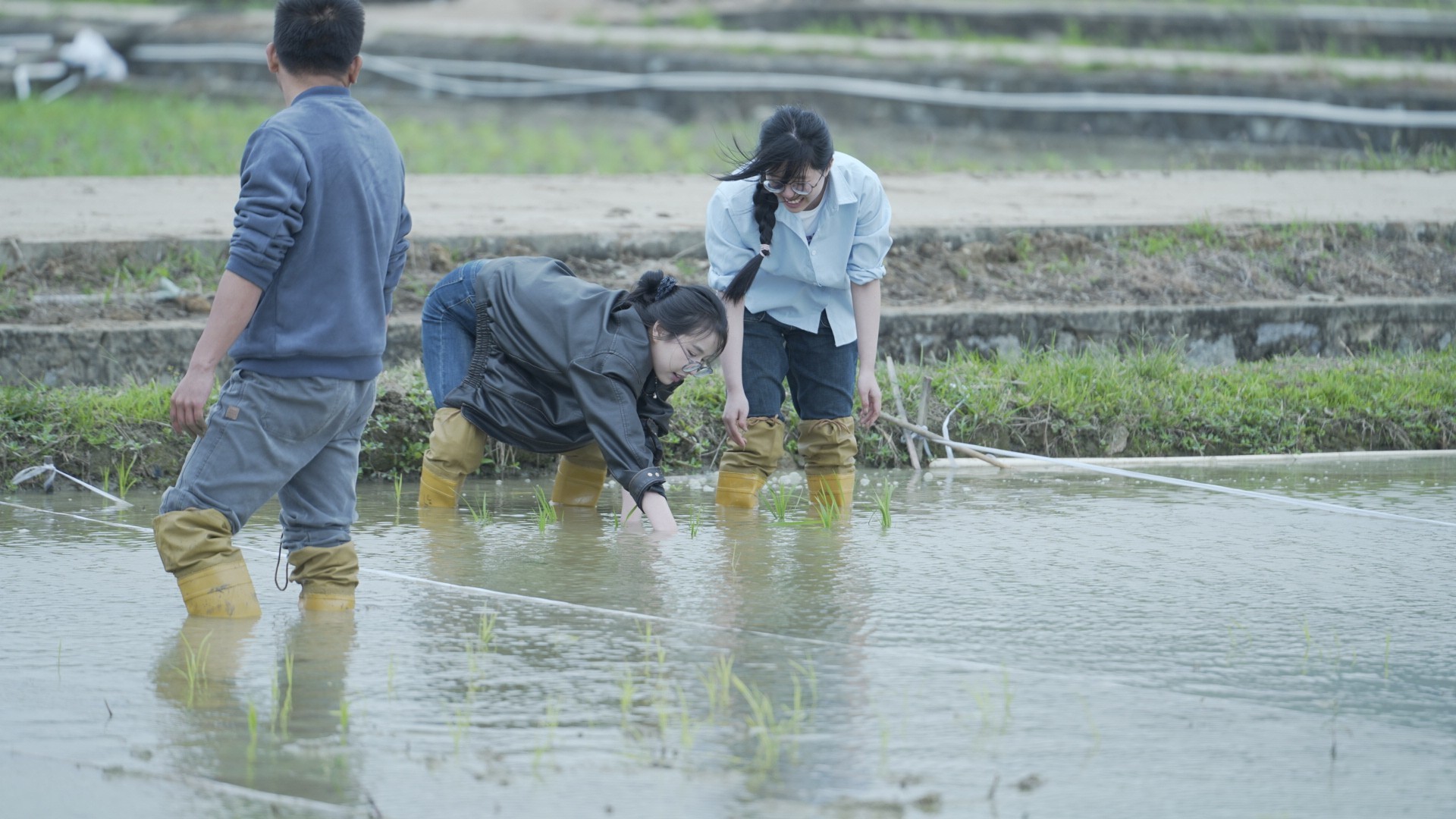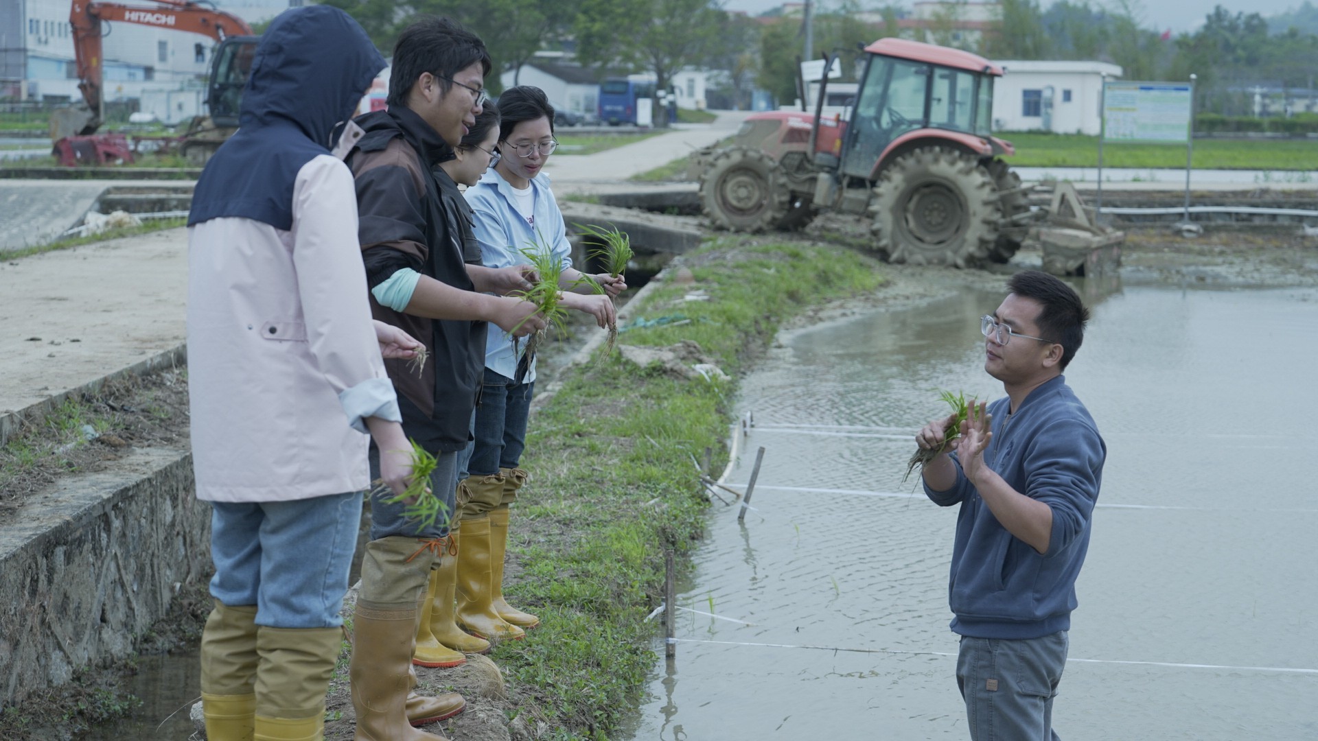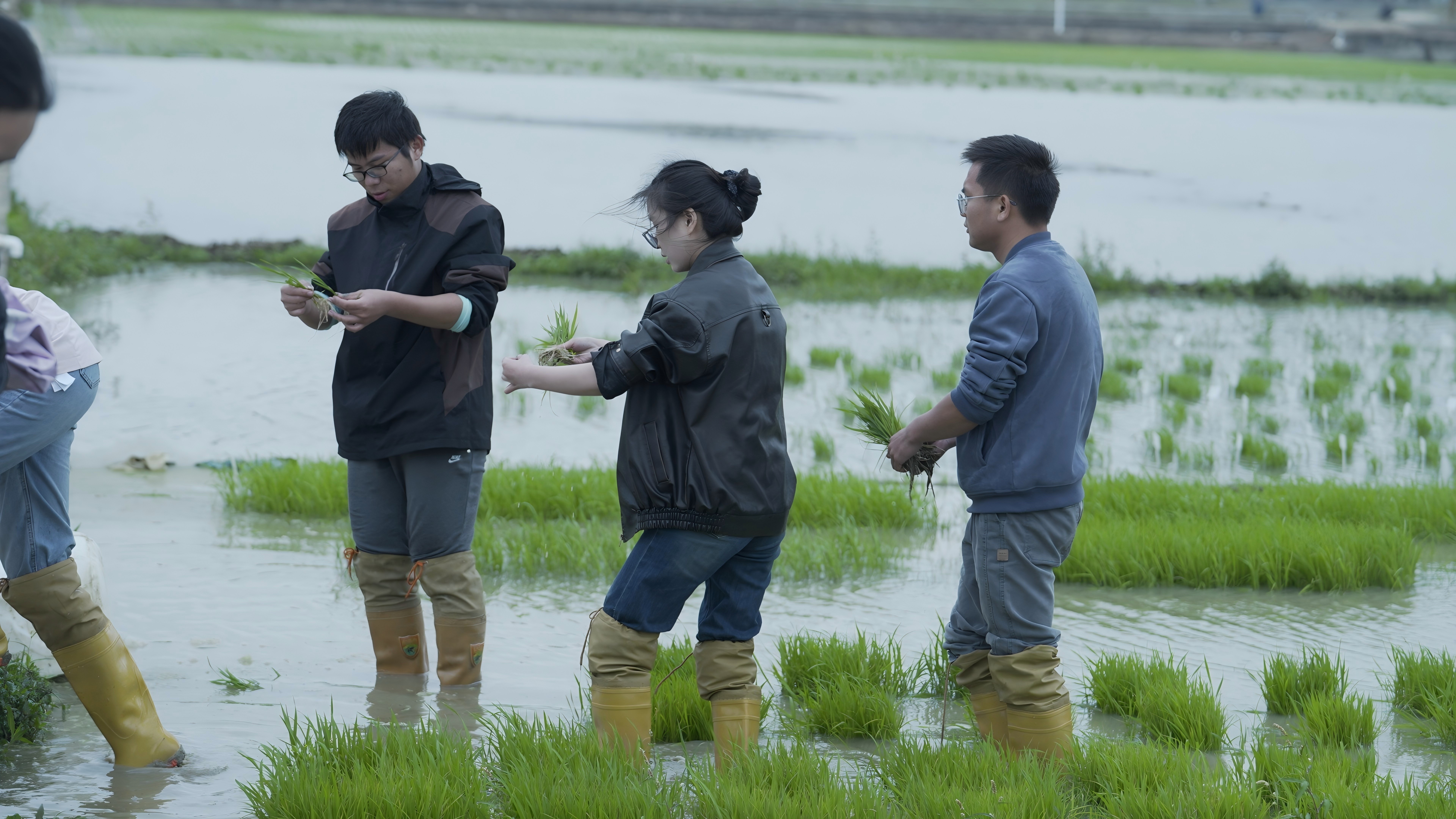 活动第二站来到多年生稻试验田。挽起裤腿、赤脚踏入泥泞的水田,同学们在水稻研究人员的指导下学习插秧技巧。“要保持秧苗间距”“根系要深扎泥土”……尽管动作生疏,但大家认真完成每一株秧苗的栽种。