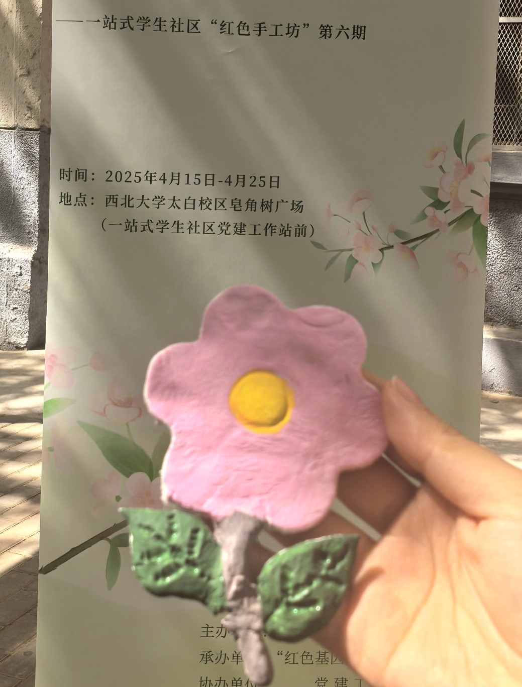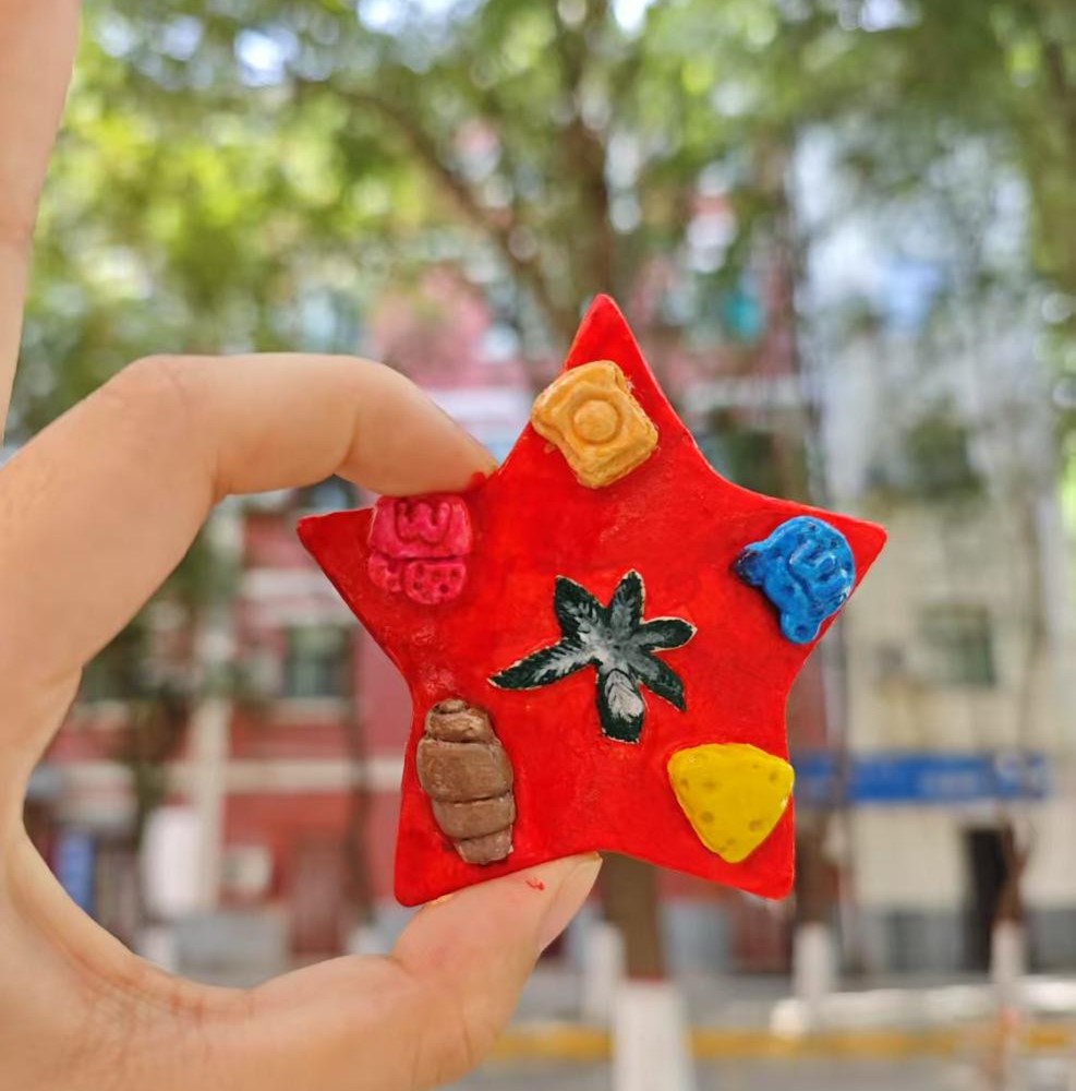 这件粘土作品以鲜艳的红色花朵为主体,象征着蓬勃的生命力与对党的热忱。黄色五角星熠熠生辉,代表着党在我们心中的核心地位,五角星与花朵的结合,寓意着在党的引领下,红色精神如繁花般绽放,传承不息。它展现了对党的忠诚与祝福,激励我们铭记党恩,赓续红色血脉,在新时代中践行使命,让党的光辉永远照耀前行之路。