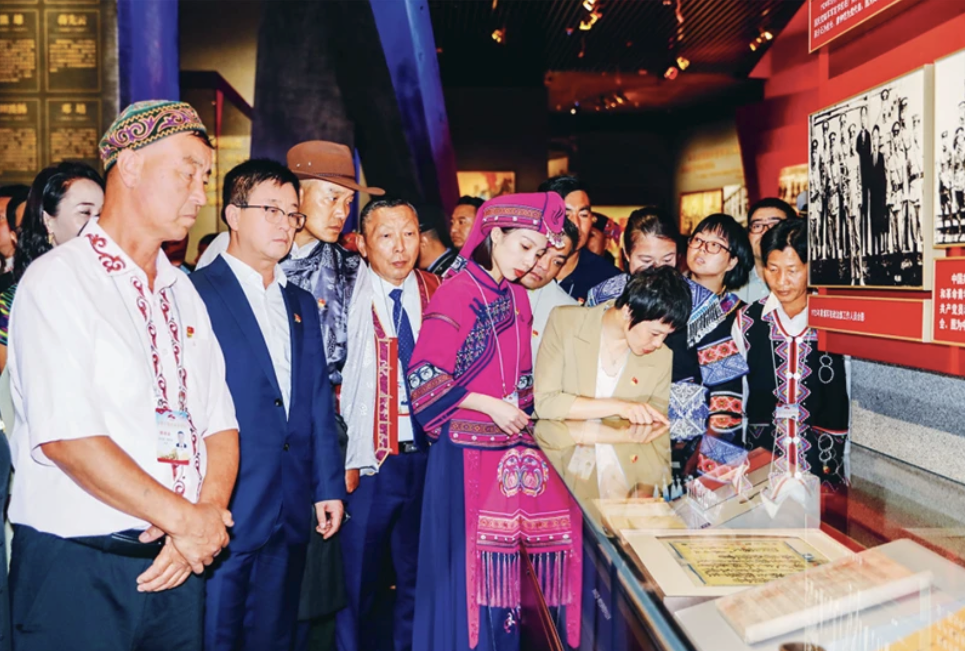 2025年9月1日至6日,全国少数民族参观团赴北京、河北参观学习。参观团共149人,由2024年受党中央、国务院表彰的全国民族团结进步模范个人和集体代表组成,并首次邀请为我国民族团结进步事业作出突出贡献的模范代表后人参加。图为9月2日,参观团成员在中国共产党历史展览馆参观。 民族画报社记者 武倩/摄