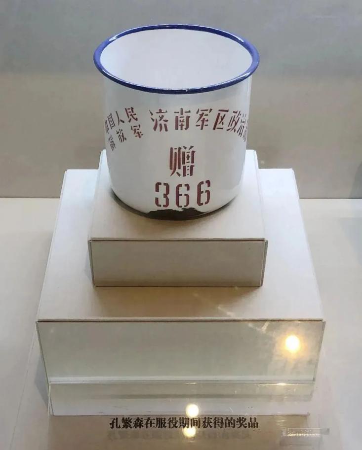 1961年,17岁的孔繁森光荣参军,在部队连年被评为“五好战士”。这个缸子是刚入伍时,济南军区政治部发给新战士的。