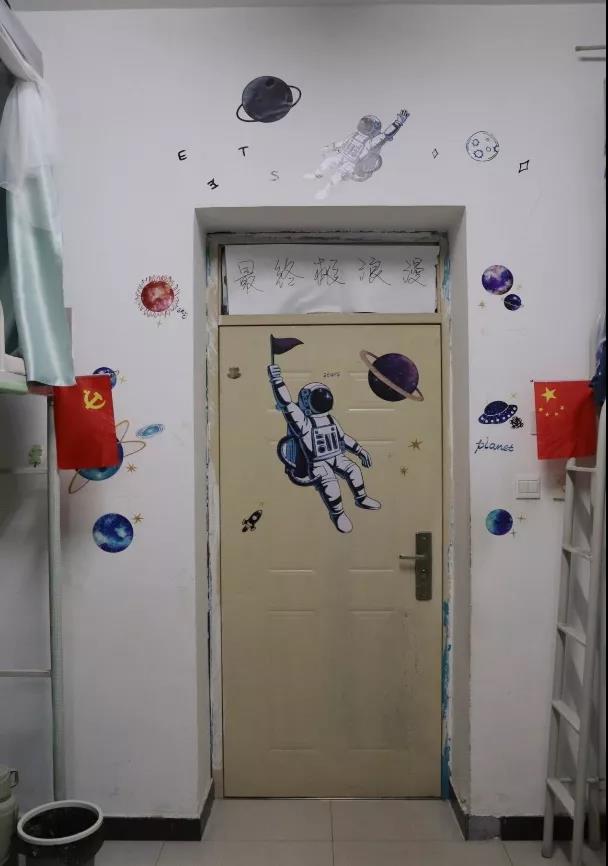 经过同学们的奇思妙想与别出心裁的精心设计,每个宿舍都展现出了独有的风采与特色,有的采取了小清新的风格,简约整洁,展现了青春的活力;有的用温馨的照片装点墙面,营造出了温暖的宿舍氛围;有的则是展现浪漫的风格,将寝室装扮成天空、宇宙的样子,令人眼前一亮。