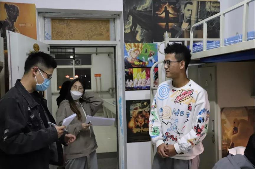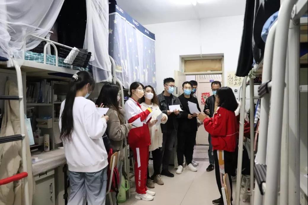 本次大赛评委由学院党委副书记魏宁老师、团委冯奕忠、孟庆彬、范铭沁、郭佳惠、刘凌飞老师及学生干部代表组成。评委们秉持着公平公正的态度,步入同学们精心装饰的宿舍,认真聆听讲解员的热情介绍。