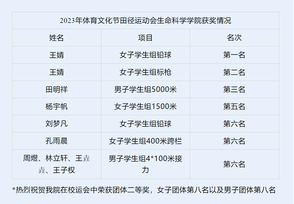 在两天半的比赛中,我们听到了同学们的激情呐喊,共赏了运动员们在赛场上的飒爽英姿,展现了生科学子们青春洋溢、奋勇拼搏的精神面貌。
