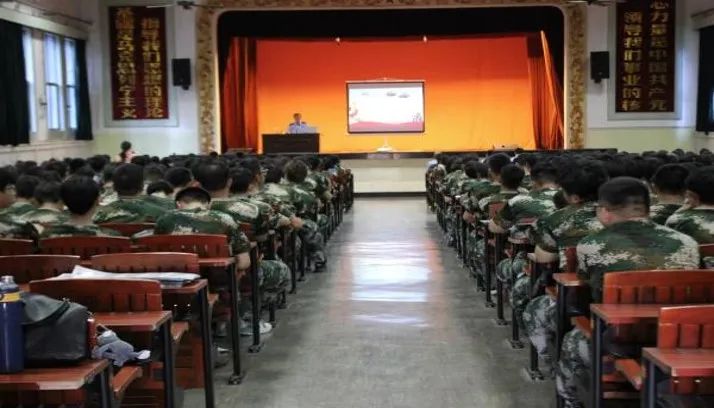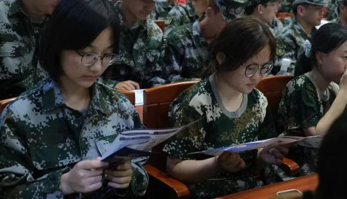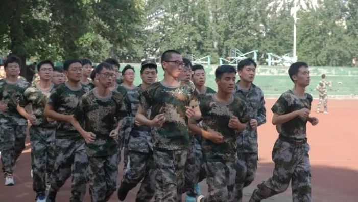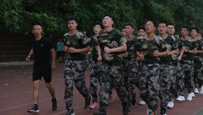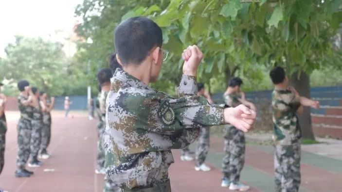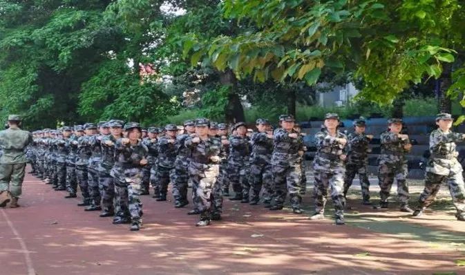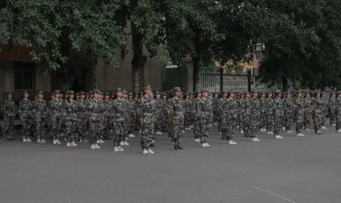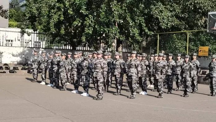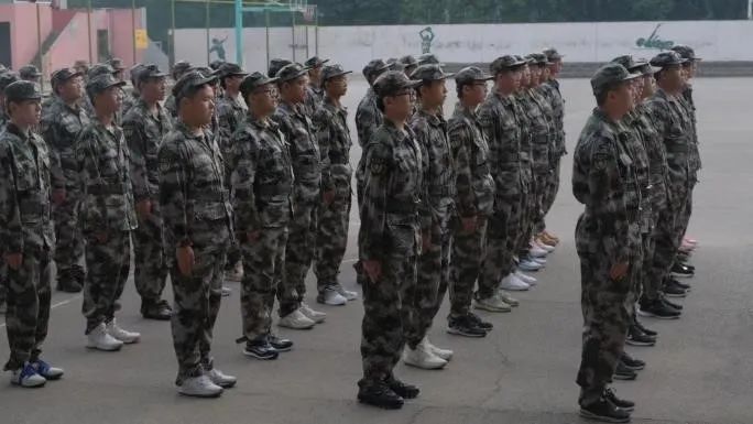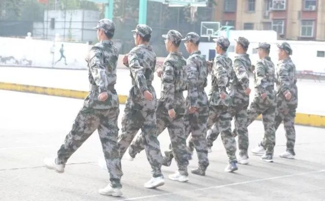 身着迷彩服的学子们昂首挺胸