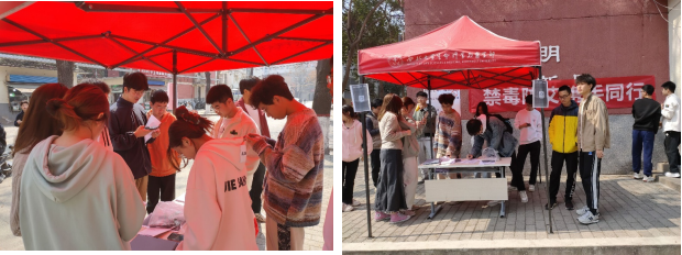 活动现场,青协志愿者们精心准备了禁毒防艾宣传外展,吸引了大批师生驻足观看。志愿者们热情地向师生们分发宣传单,科普毒品与艾滋的危害及禁毒防艾工作的重要性和必要性,详细讲解了毒品如何使人上瘾、破坏身体健康及艾滋如何导致免疫系统受损、危及生命。通过这些生动的讲解,师生们对禁毒防艾工作有了更深刻的认识。