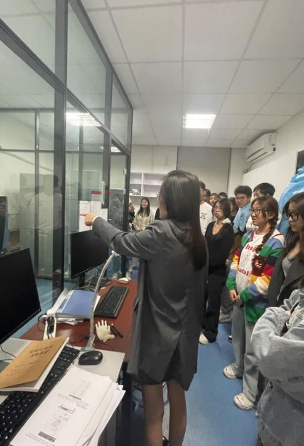 分享会结束后,孙士生老师还带领同学们参观了学校的实验室。在实验室里,大家亲眼目睹了学长学姐们进行科研实验的场景,感受到了浓厚的学术氛围。孙老师团队还详细介绍了实验室的仪器设备、科研项目以及实验室的日常管理等内容,让同学们对研究生阶段的学术生活有了更加直观的了解。