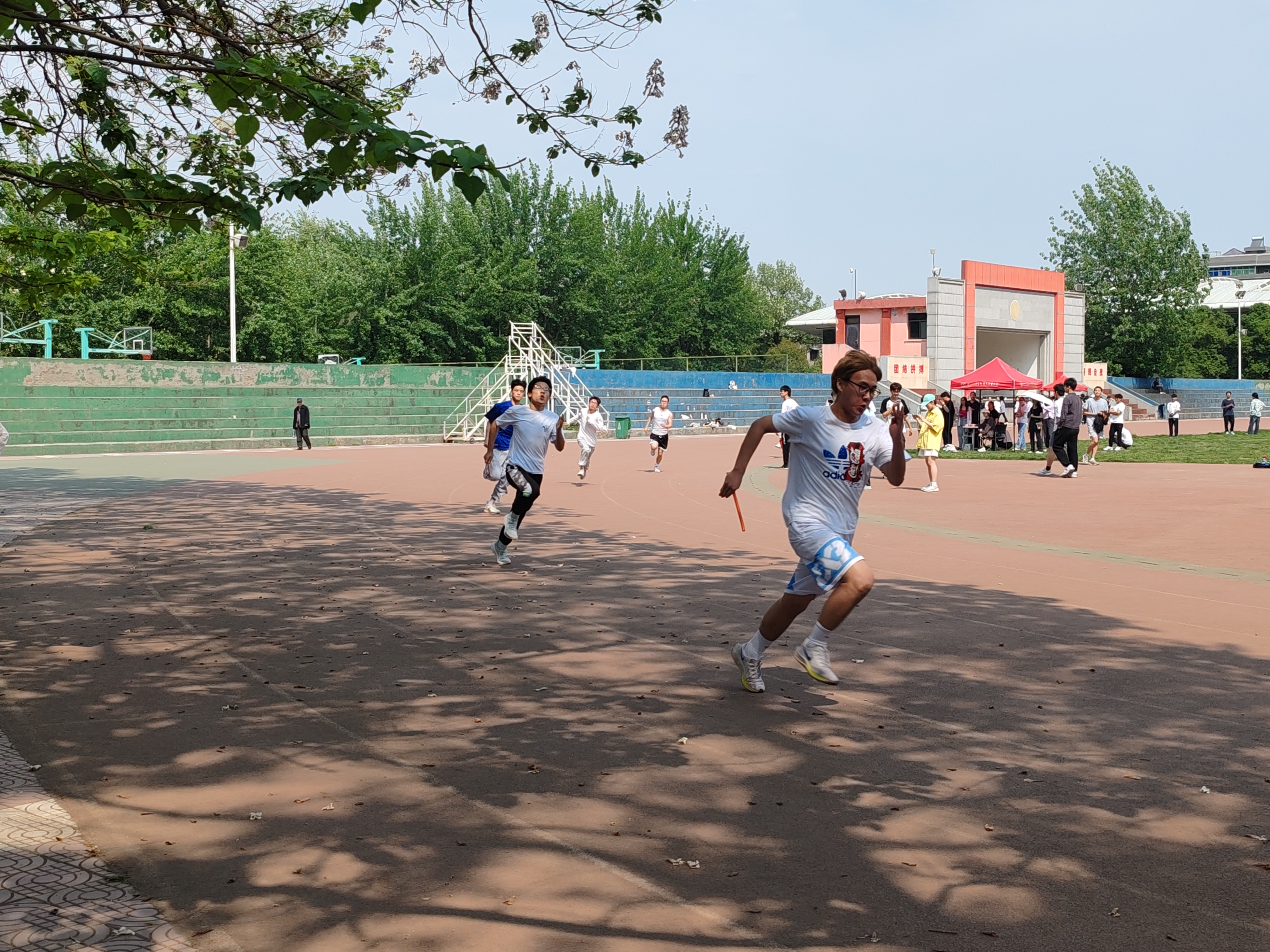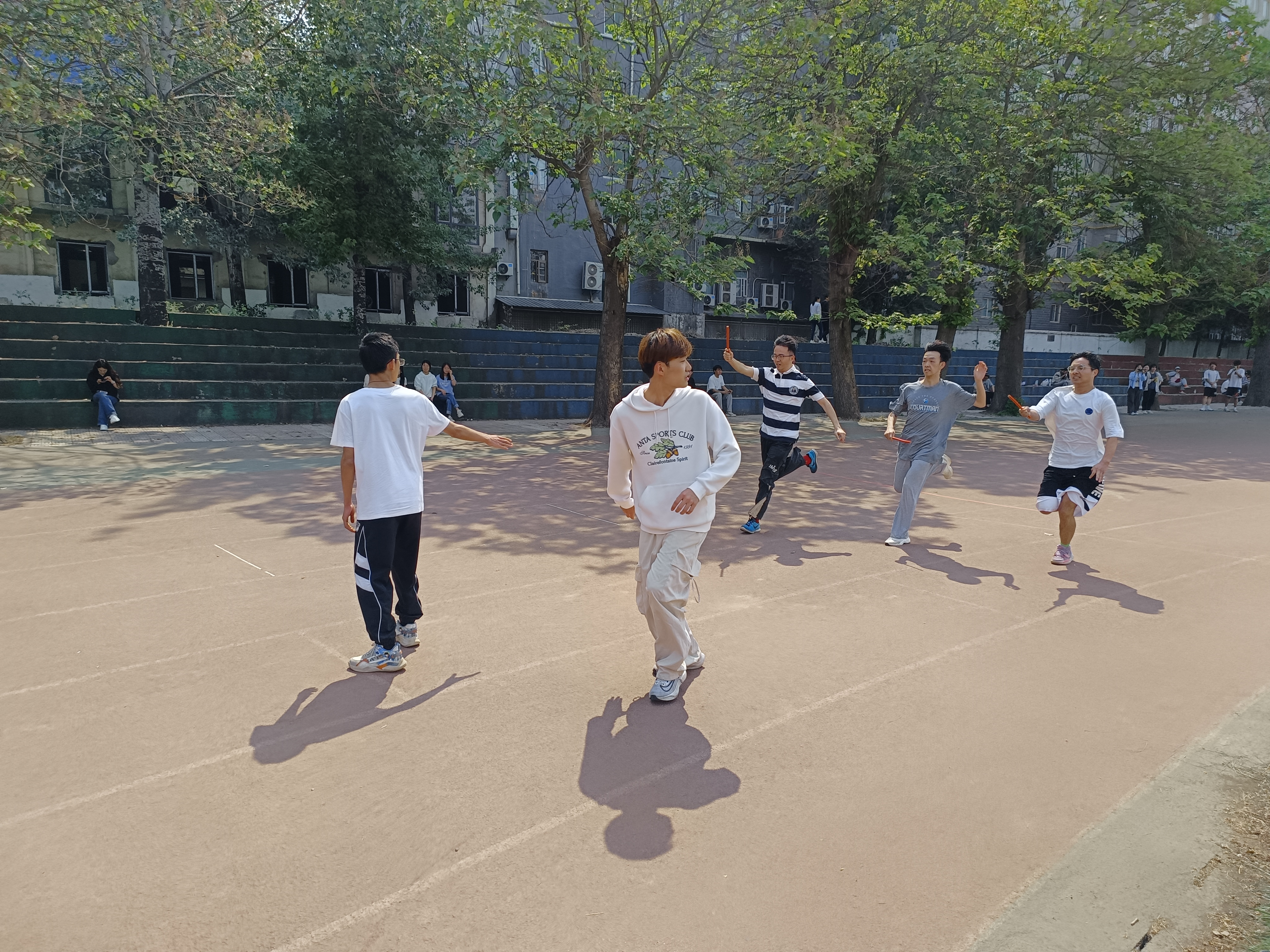 接力赛:每一次精准的交接棒,都传递着信任与希望。每一个奋力奔跑的脚步,都是对自我的突破,前方队友伸出的手,观赛同学的鼓励与希冀,都是运动员们势如破竹的动力源泉。