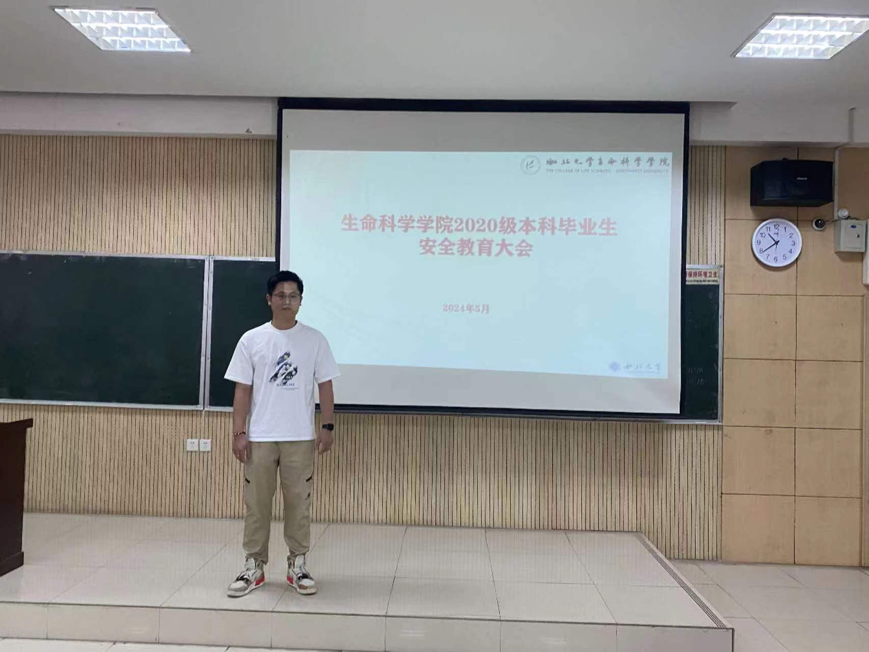 为进一步加强本科毕业生安全教育,维护校园稳定安全,5月30日上午,我院在太白校区7111教室开展本科毕业班安全稳定教育大会,会议由2020级本科毕业班辅导员范铭沁主持召开,全体本科毕业生参加。