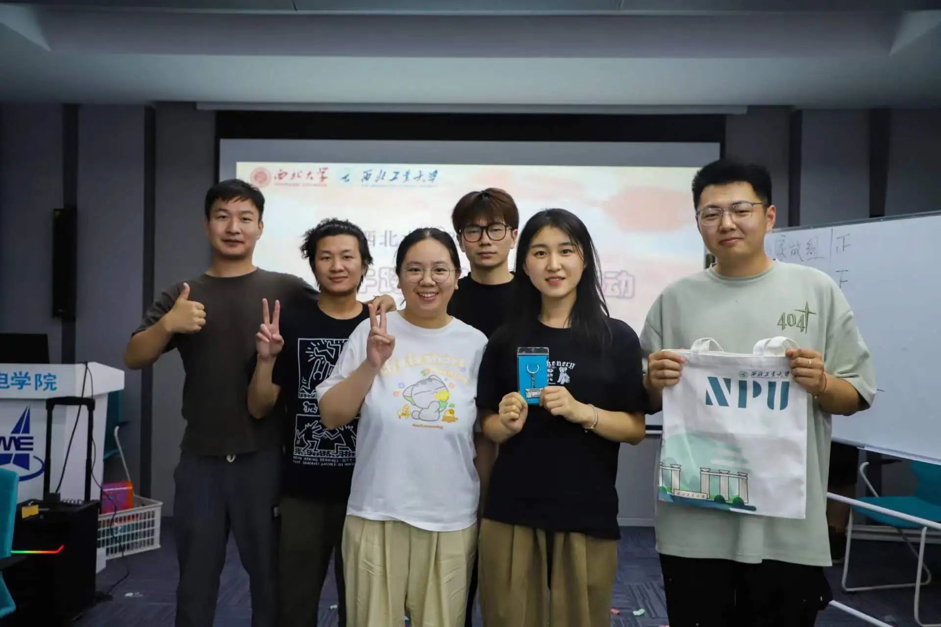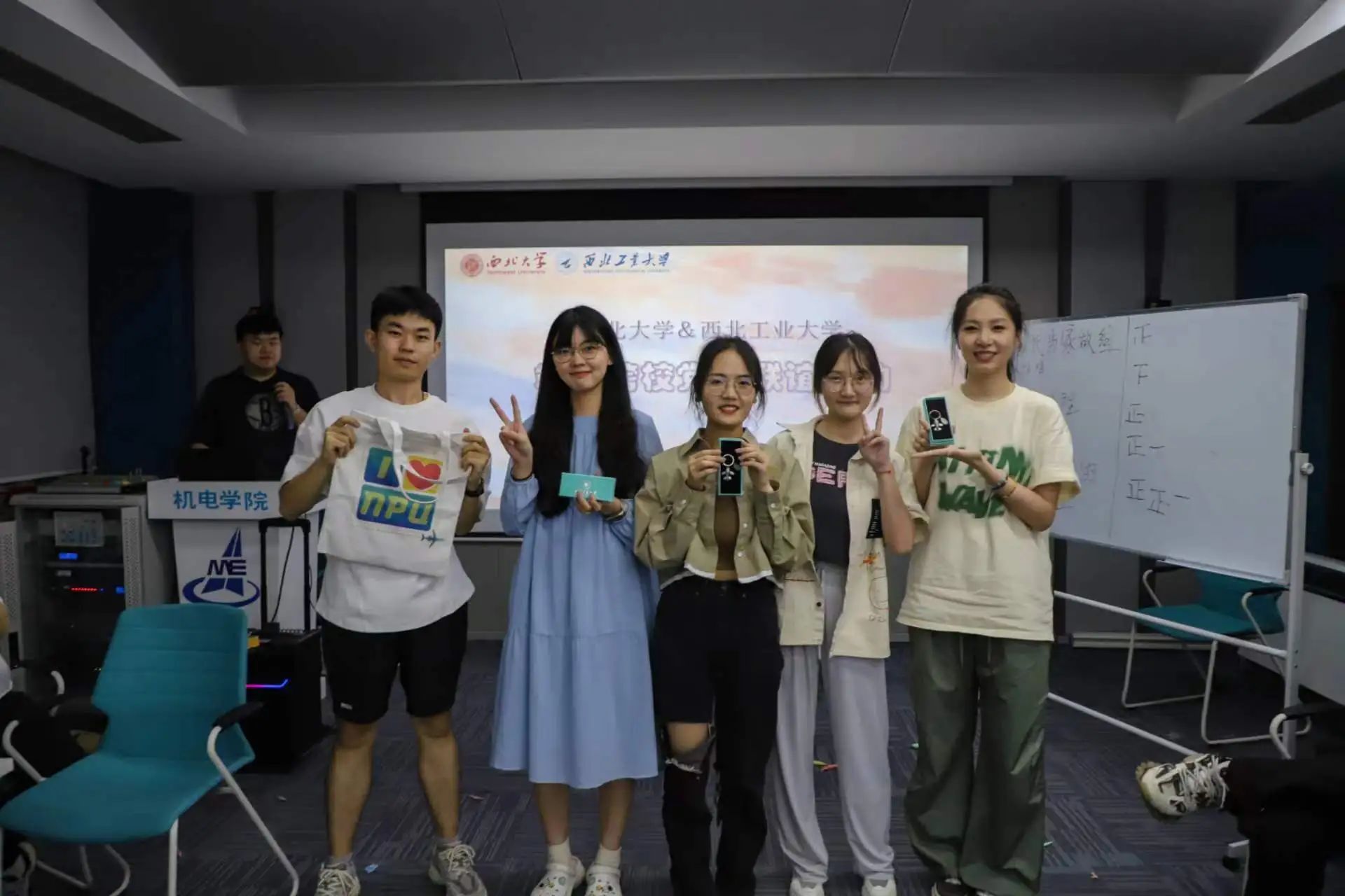 活动最后,同学们一起抵达西北工业大学,机电学院的同学们带领大家参观了校园,随后在航空楼410开展破冰活动,包括猜词炸弹、筷子传球、你画我猜等游戏环节,在主持人专业而幽默欢快的主持氛围下,现场气氛热烈,掌声雷动,欢乐融洽。游戏结束后,西北工业大学机电学院研究生会向参与同学赠送了西工大文创纪念品,参会同学合影留念,活动圆满结束。