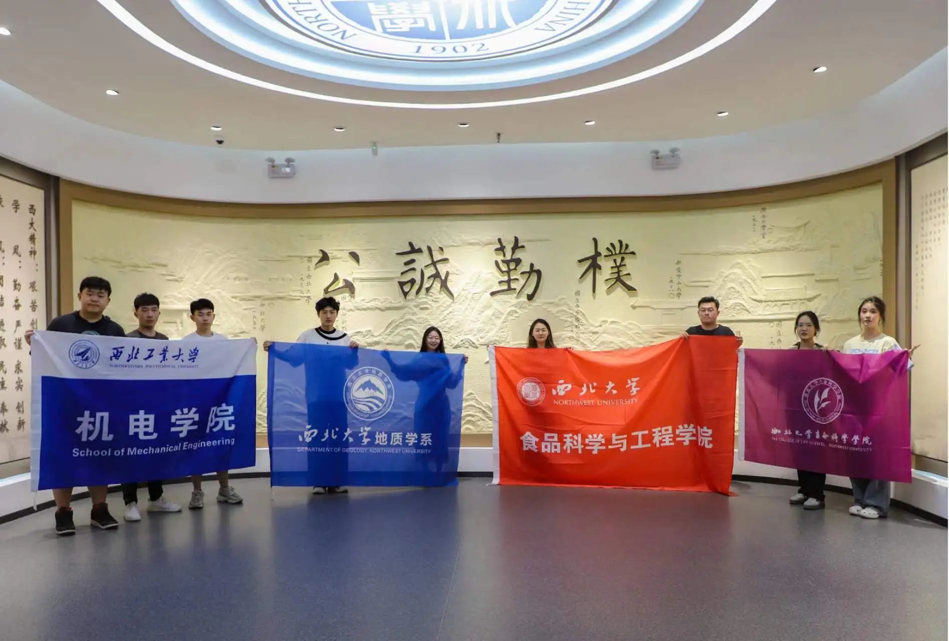 活动分为三项内容进行。首先全体成员共同赴学校博物馆进行参观交流,讲解员依次带领同学们走过地球馆、生物馆及历史馆三个展馆。地球馆中陈列着栩栩如生的古生物化石和古脊椎动物化石,在讲解员生动形象的讲解下,同学们仿佛回到了远古时代,切身了解了地球的演化和生命的进化过程;生物馆以生物进化为主线,展示了生物的起源和早期的演化进程,还存有珍贵的秦岭四宝(大熊猫、金丝猴、朱鹮、羚牛)的真实标本;在历史馆中,大家一起走过了史前时期、周秦汉唐兴盛时期、对外交流和校园考古四个部分,千年以前的世界恍如昨日般涌现,逝去的生命也似鲜活了起来。一个半小时的时空隧道让同学们对永利集团的学校特色、历史文化有了充分的了解,也拉近了同学们之间的距离。参观结束,学生代表为西北工业大学的同学们送上博物馆纪念手册,并在博物馆文创体验区进行了集章留念。