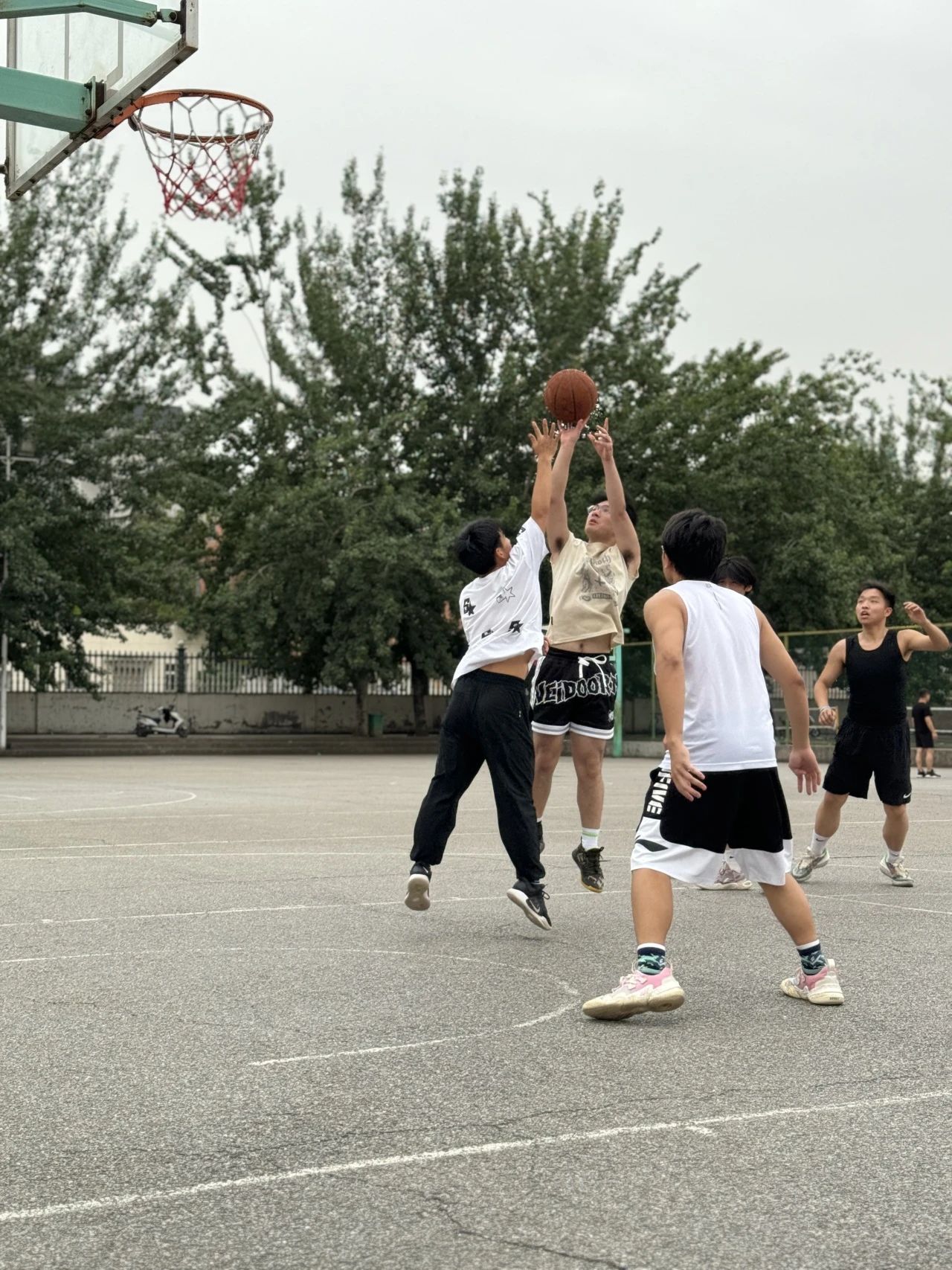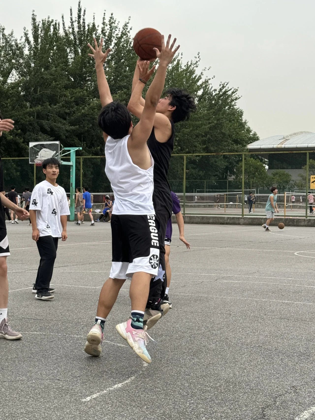 骄阳虽然炙热,却无法压制住运动员们澎湃的激情。每一次跳跃,每一记投篮,都是对青春和热血的热烈颂歌。运动员们的动作流畅而优雅,如同行云流水一般,每一个奔跑、跳跃和投篮都显得那么自然而充满韵律。他们在场上的运球、传球和呐喊,展现了团队间默契的配合和相互支持,彼此间的协作如同精心编排的舞蹈,每一个动作都恰到好处,相得益彰。