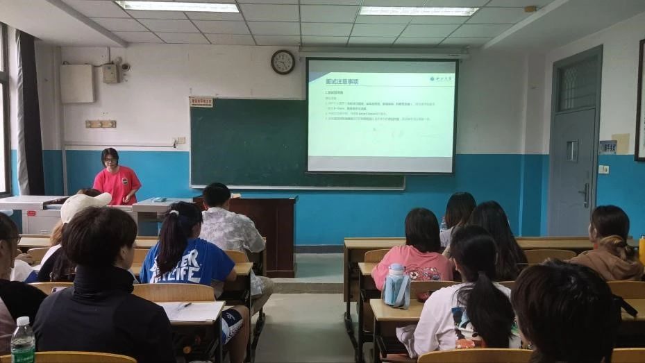 郭雅霜围绕投递夏令营过程中的技巧、高校和研究所的区别为同学们展开了具体介绍。同时,她向同学们分享了自己推免过程中遇到的困难和挫折,强调了一个良好的心态在保研过程中是至关重要的,使同学们对保研推免有了更全面的认识。