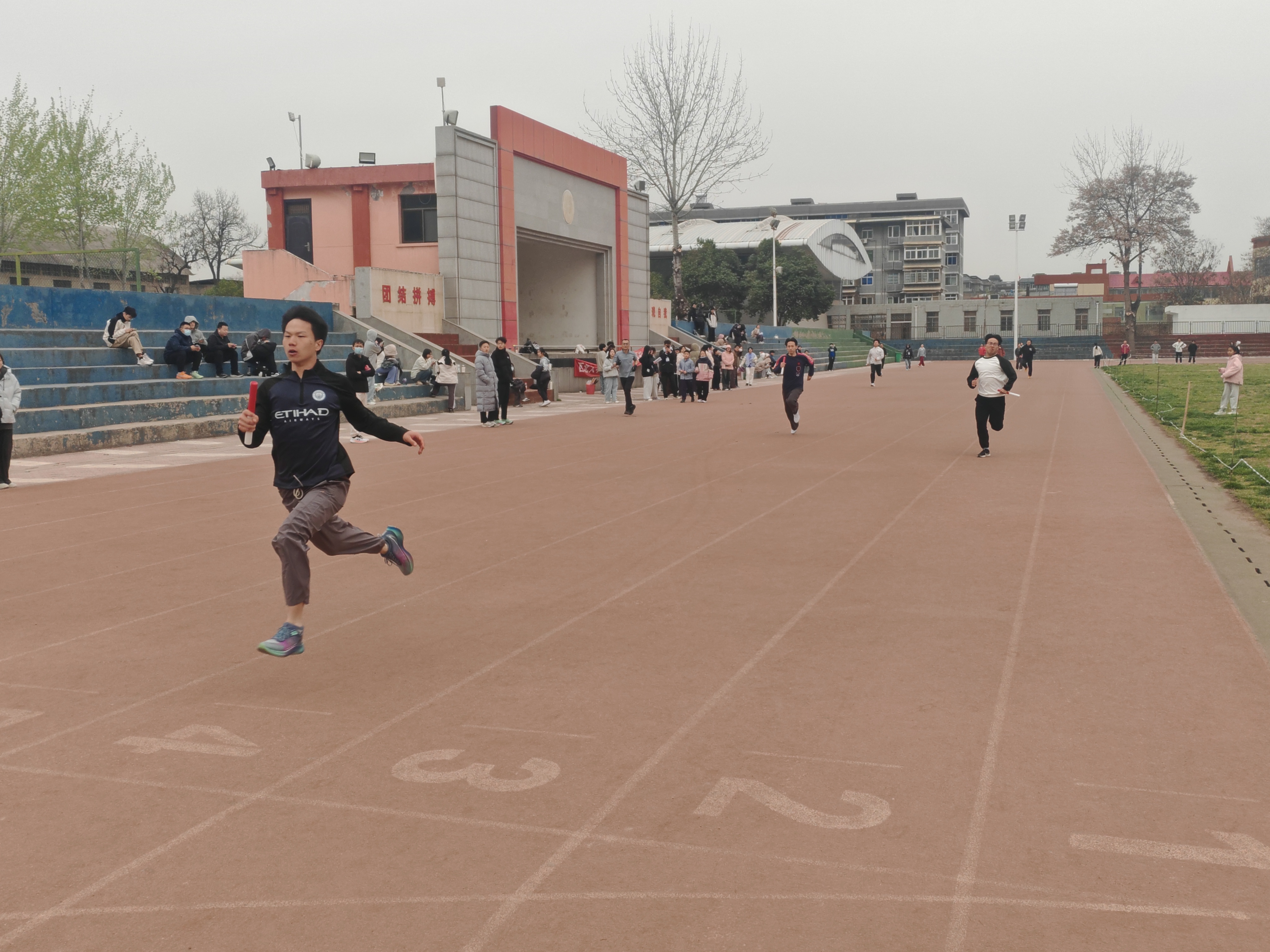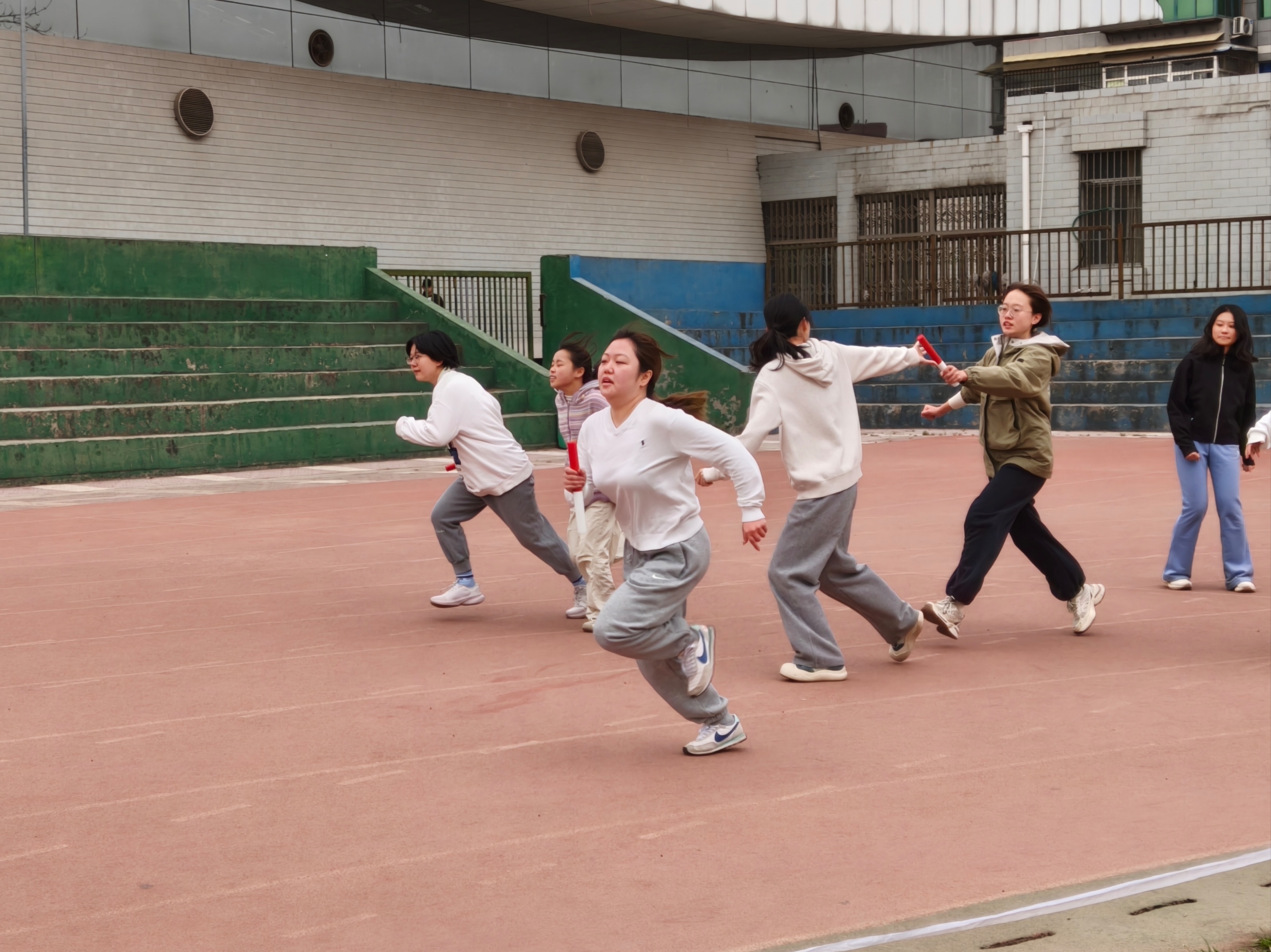 红白接力棒在手中飞舞,每一次传递都是默契的升华。最后一棒全力冲刺,团队的光芒在终点闪耀!