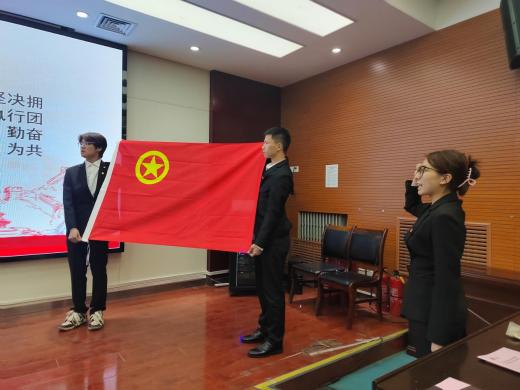 在团委学生副书记封雅婷同学的领誓下,全体团员整齐肃立,面向鲜艳的团旗,神情庄重而肃穆。团员们齐声宣誓,誓言铿锵有力、掷地有声。这不仅是团员们对共青团组织的庄严承诺,更彰显出新时代青年学子不忘初心、砥砺前行,矢志践行使命的坚定决心。