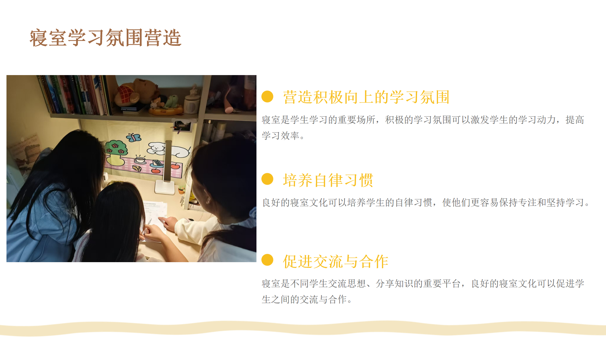 同学们的书桌设计别出心裁,从简约现代风格所展现的利落明快,到复古文艺风格所散发的醇厚韵味;宿舍风格亦是多姿多彩,既有科技智能风格,又有居家温馨风格营造的舒适氛围。精美的宿舍徽章别具一格,犹如点睛之笔,各宿舍讲解人员凭借从容自信的姿态和生动详实的讲解,让整个展示过程精彩纷呈,他们的声音清晰悦耳、富有感染力,用词精准恰当、条理分明,将宿舍设计的每一处巧思、每一个细节都娓娓道来。大家的热情被充分点燃,无论是参赛者还是观众都沉浸其中,使得整个活动的吸引力和感染力都得到了极大的提升。