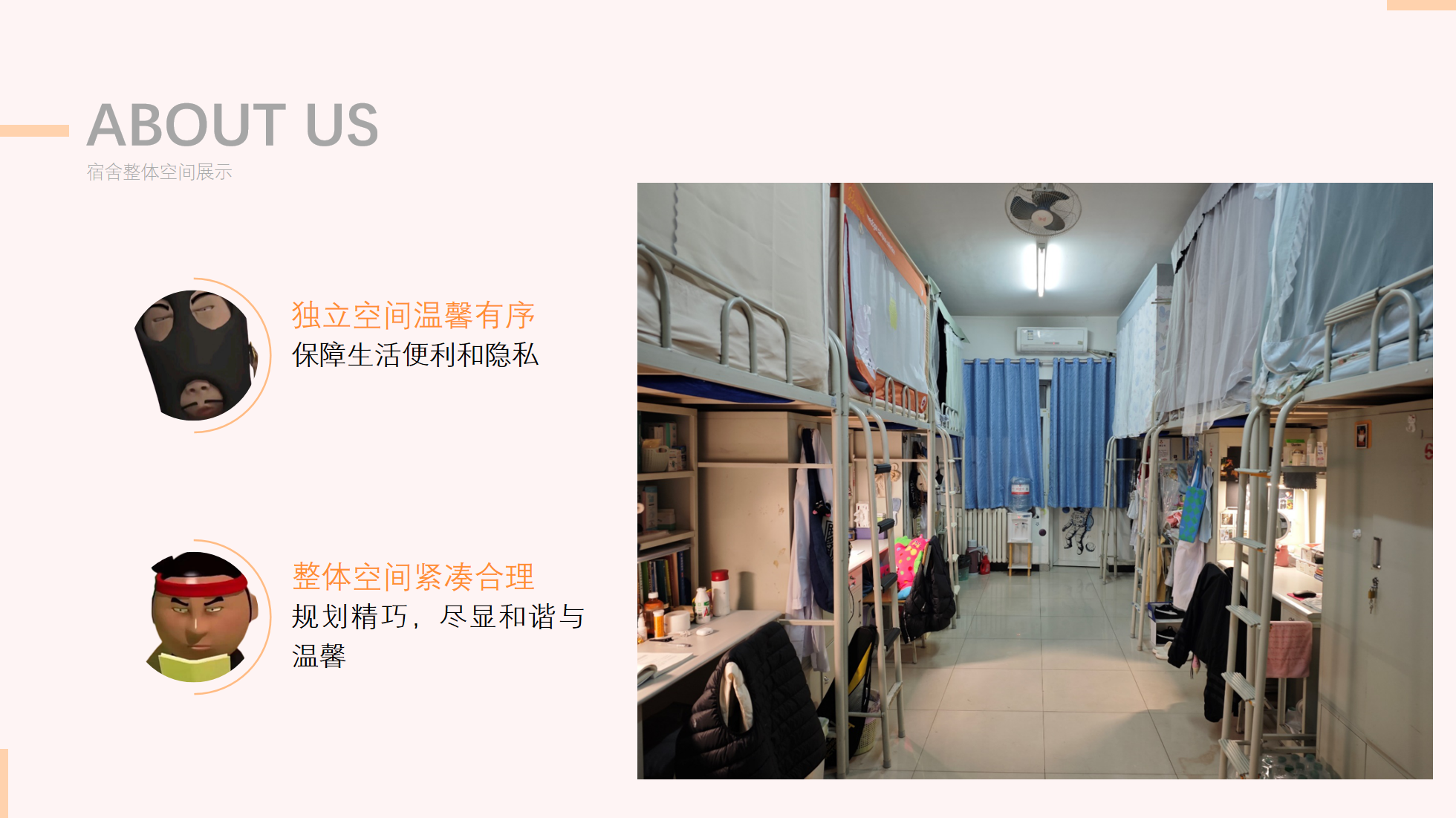 本次大赛包含宿舍风采展示环节与宿舍才艺展示环节,在宿舍风采展示中,各个小组的同学们仿若摇身一变,成为了独具匠心的小小设计师,他们凭借着精心打磨的幻灯片,将各自宿舍的设计理念、布局巧思以及装饰亮点一一呈现在众人眼前,生动形象地讲述着宿舍设计背后的故事与创意源泉,仿佛带着观众开启了一场别开生面的宿舍文化之旅。